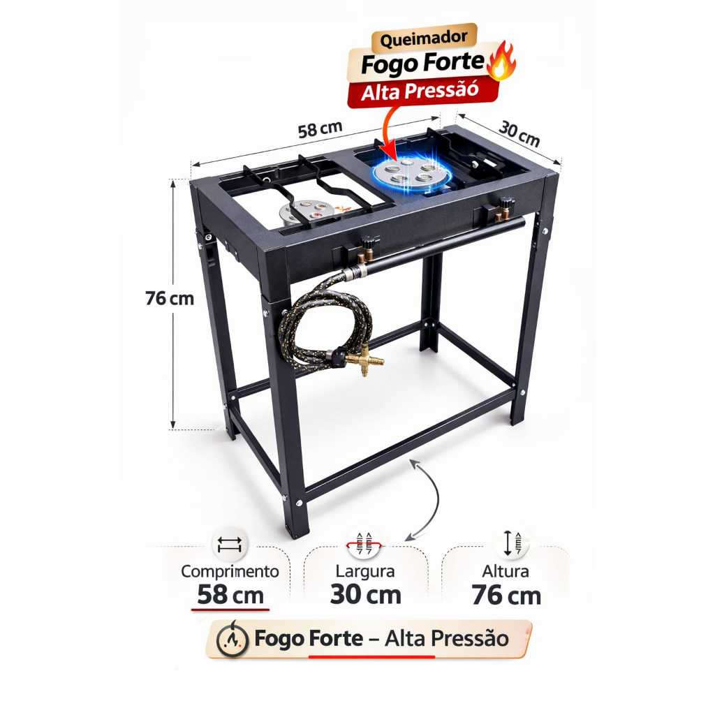 FOGÃO 2 BOCAS ALTA PRESSÃO PORTÁTIL FRITURA