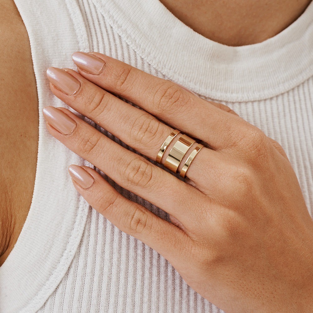 Anel Ajustável Largo Faixas em Banho de Ouro 18k