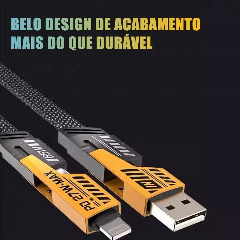 Cabo Turbo Carregamento Rápido 4 em 1 65W/27W Cabeça de Metal Revestimento de Nylon 1 metro