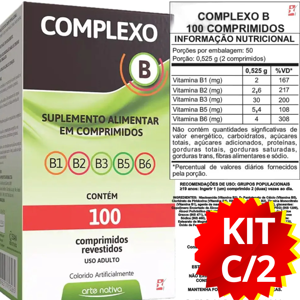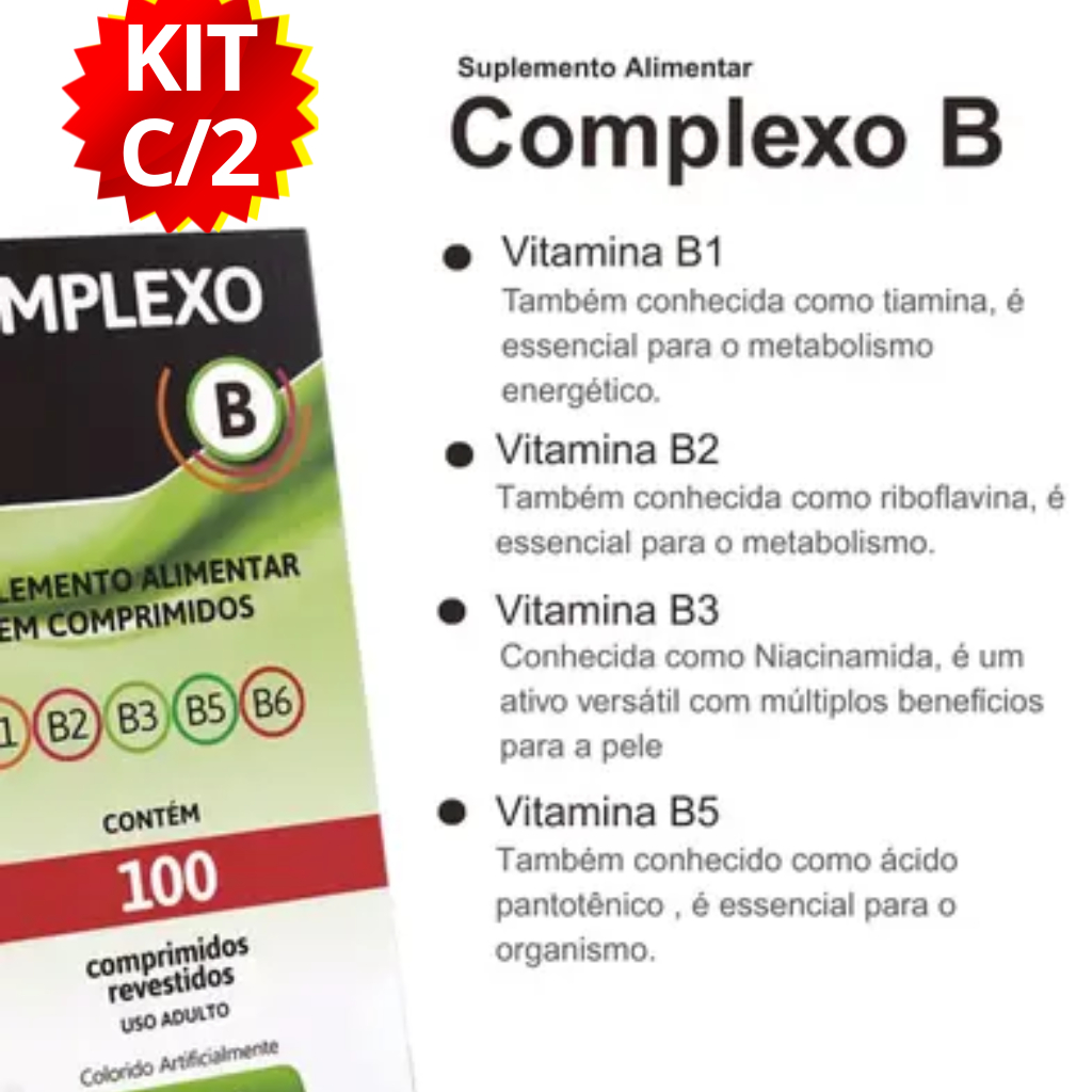 COMPLEXO B 100 COMPRIMIDOS | KIT COM 2 UNIDADES | TOTAL 200 COMPRIMIDOS