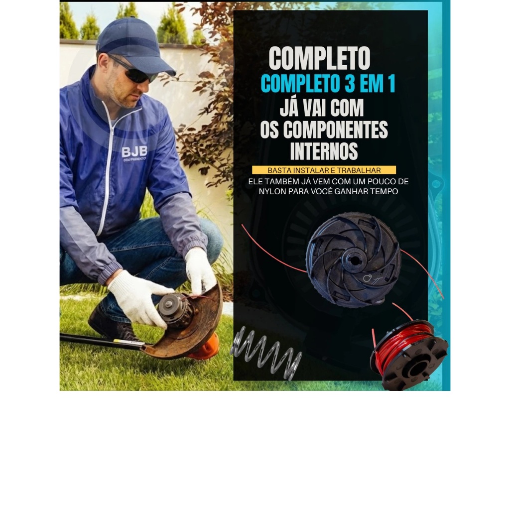 Carretel Completo Fio De Nylon Tipo Bate-libera Para Aparador De Grama Multimarcas Tekna Tramontina Trapp Vulcan Toyama