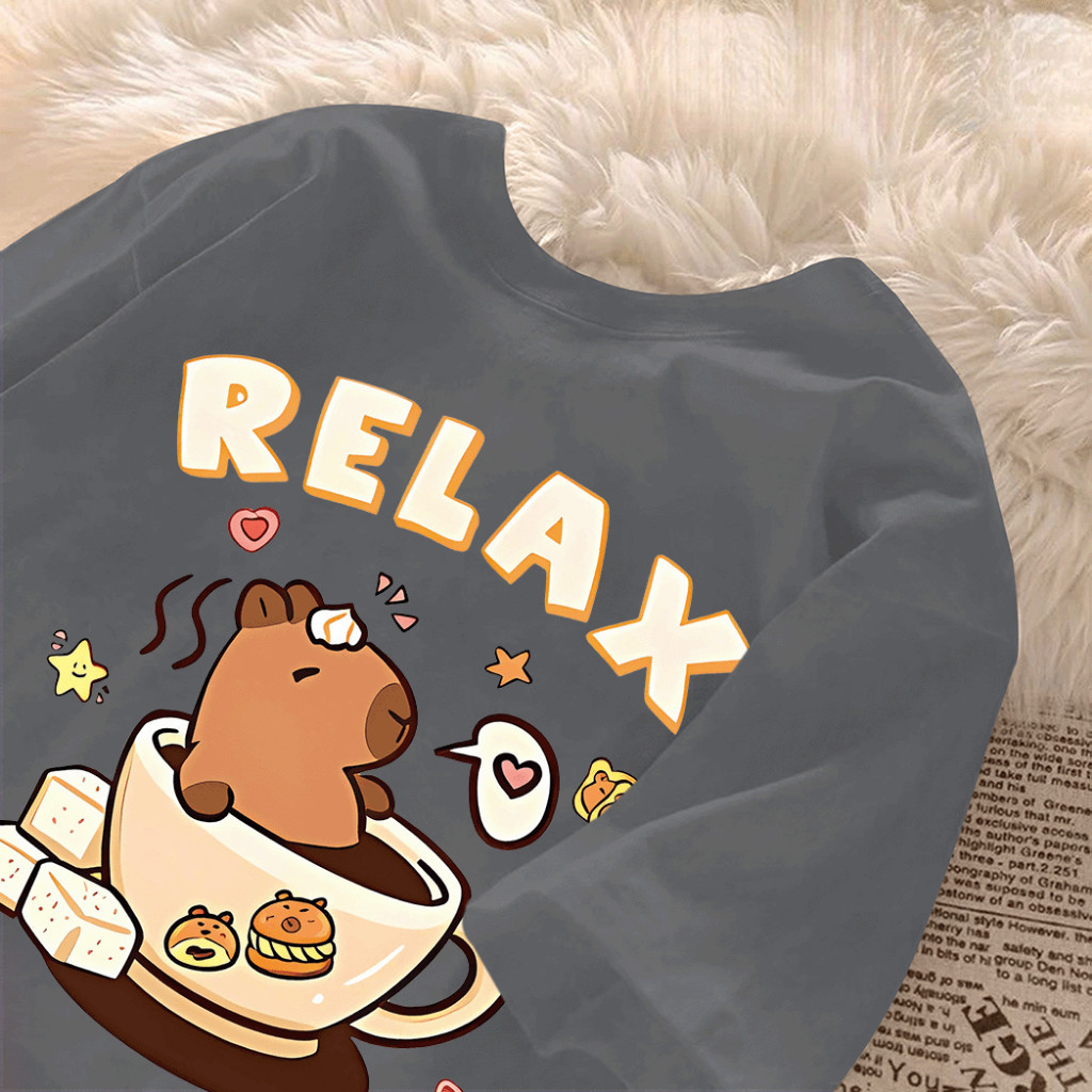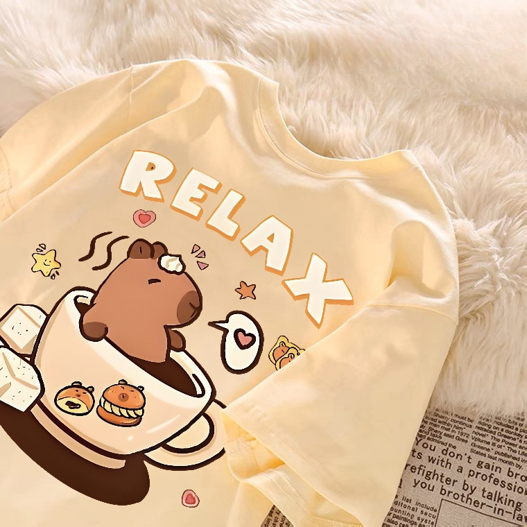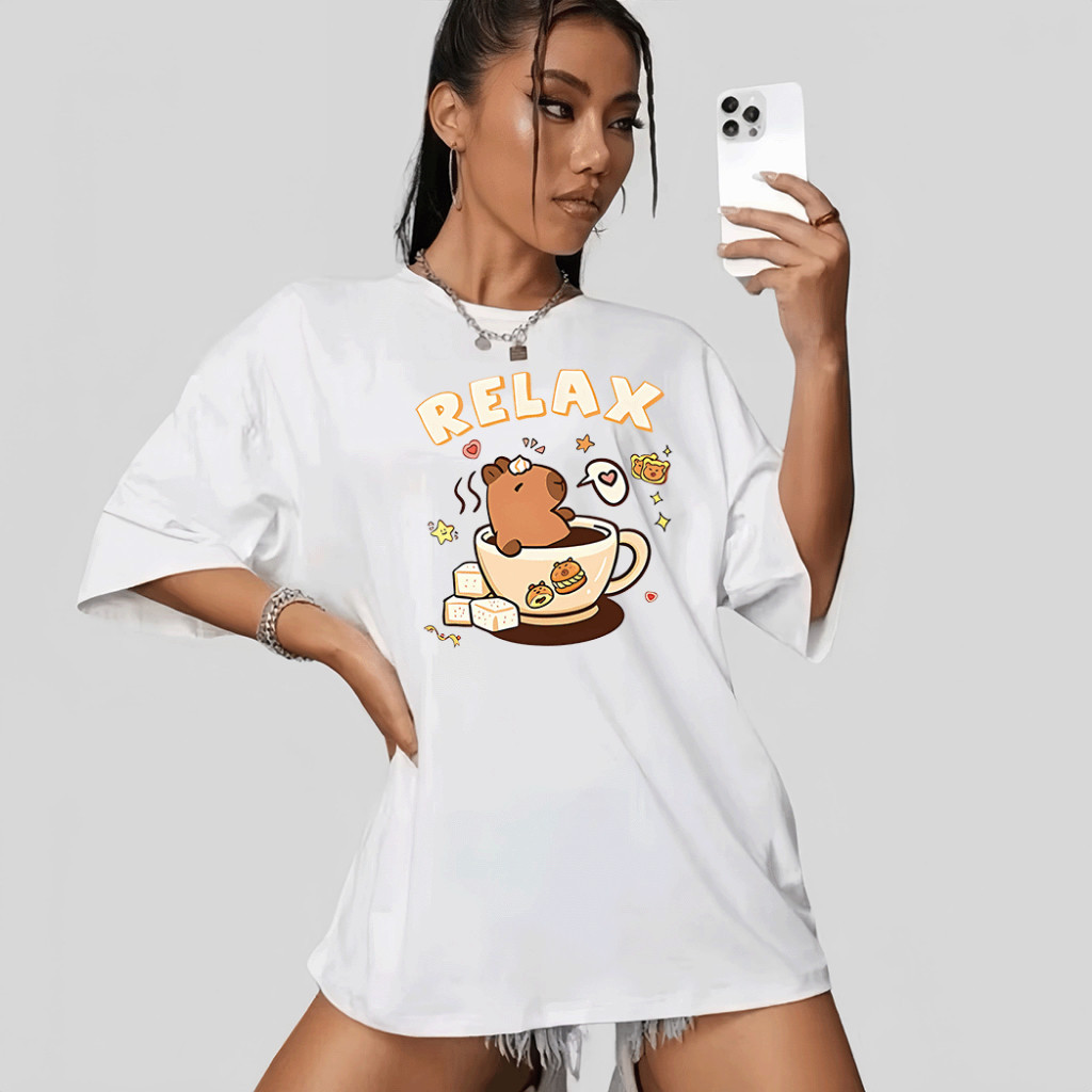 Camiseta Feminina Basica 100% Algodão Premium (Unissex) Larga Estampa Relax Capivara Capibara