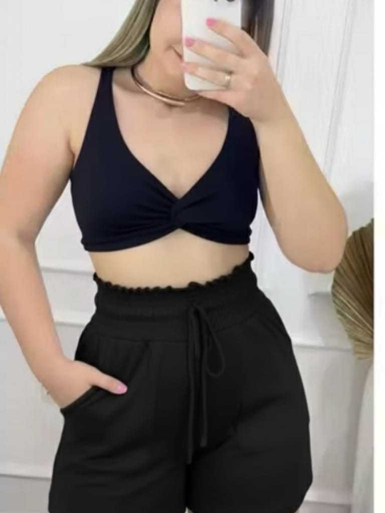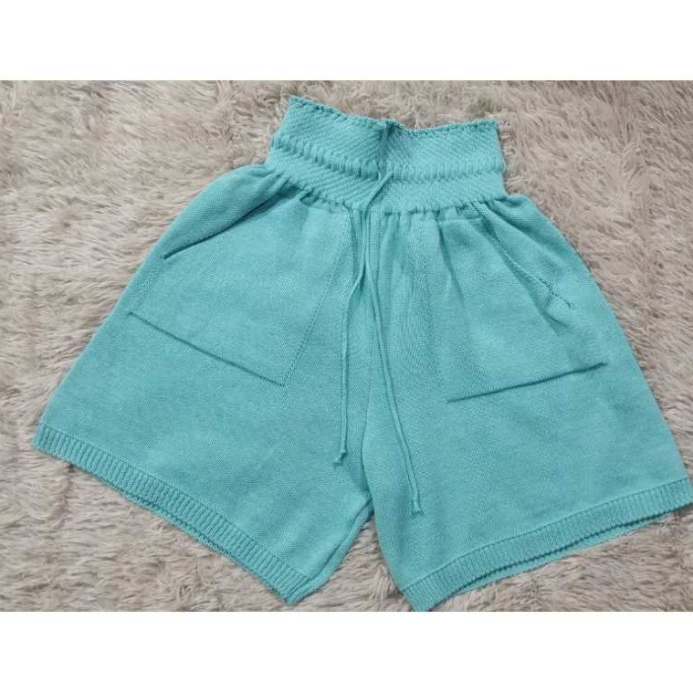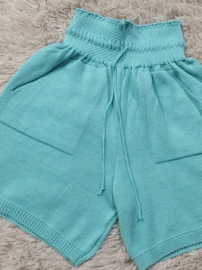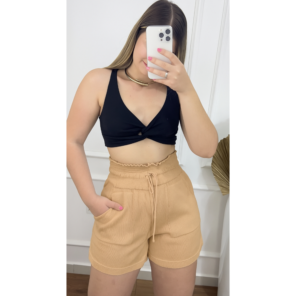 Short Feminino Cintura Alta de Tricot Tipo Alfaiataria com Bolso Roupa Feminina Moda Verão Elegante