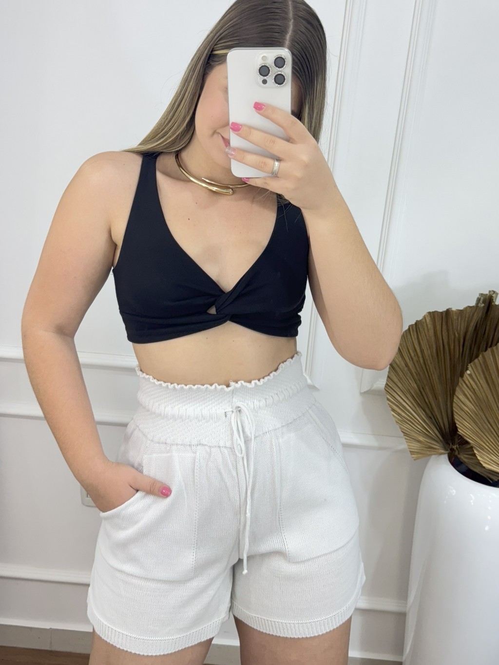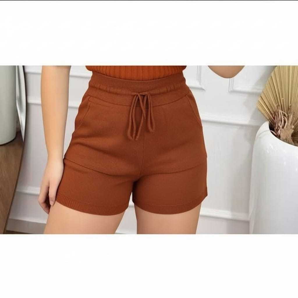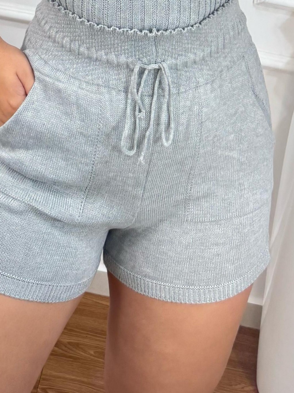 Short Feminino Cintura Alta de Tricot Tipo Alfaiataria com Bolso Roupa Feminina Moda Verão Elegante