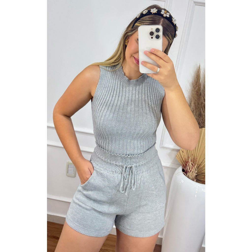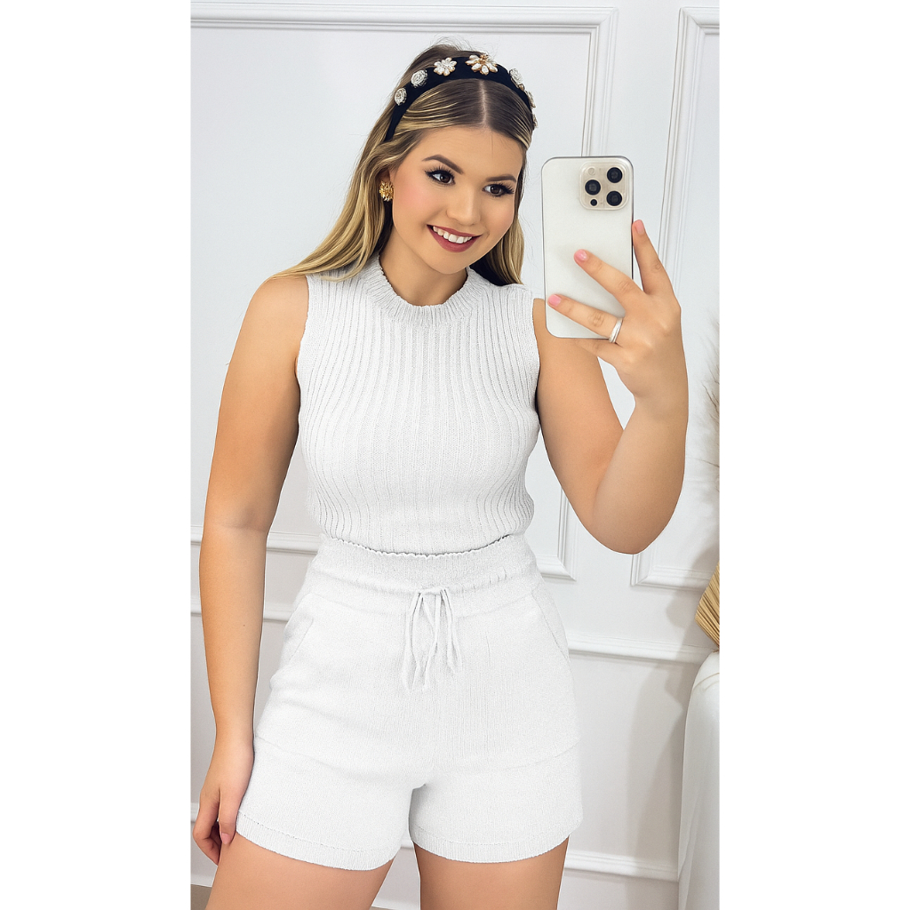 Conjunto Tricot Feminino Estilosa Garrafinha + Short confortável Moda meia estação