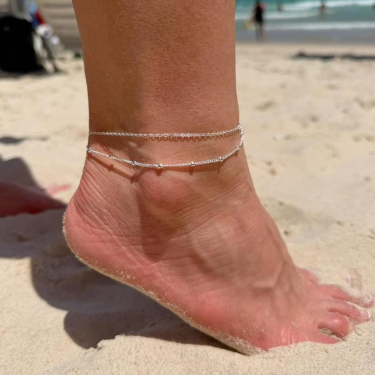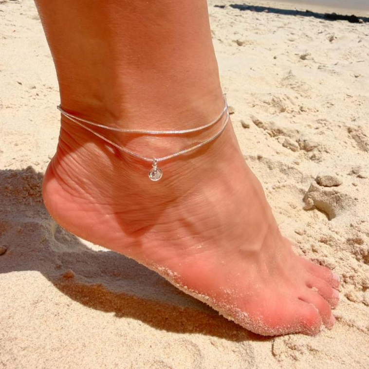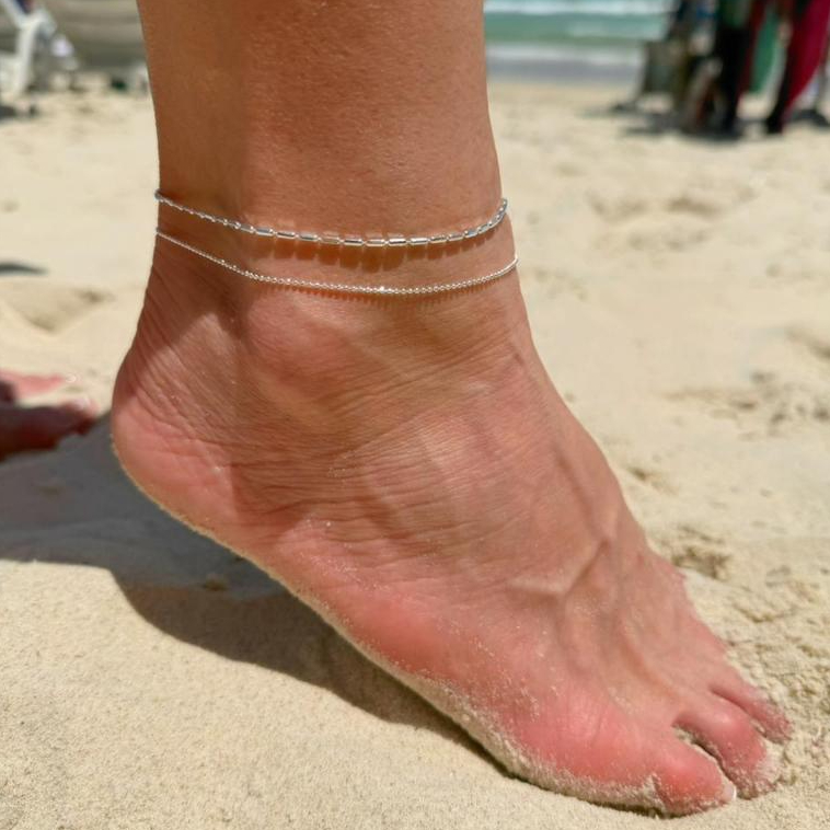 Tornozeleira Prata 925 Feminina Delicada Minimalista Ajustável