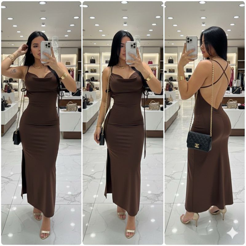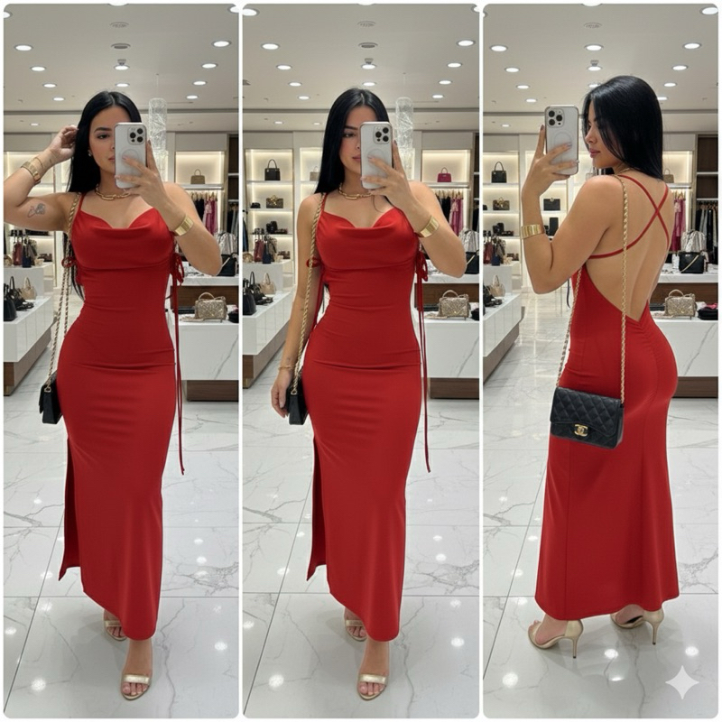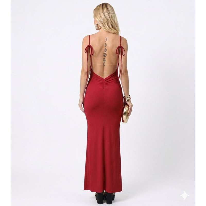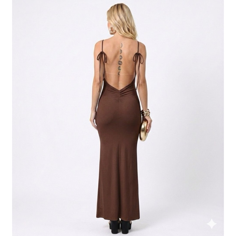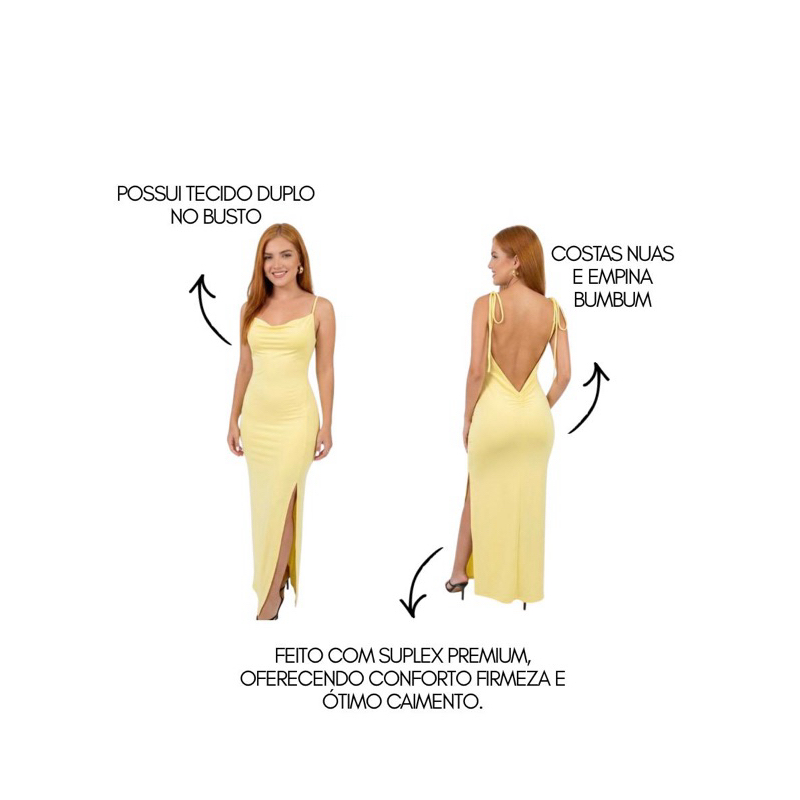 Vestido Longo Costa Nua Fenda Estilo Blogueira Lançamento Chique Amarração Verão