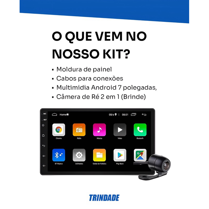 Multimídia Android GPS CarPlay Renault Duster Kwid Sandero Logan Captur + Moldura + Camera de ré