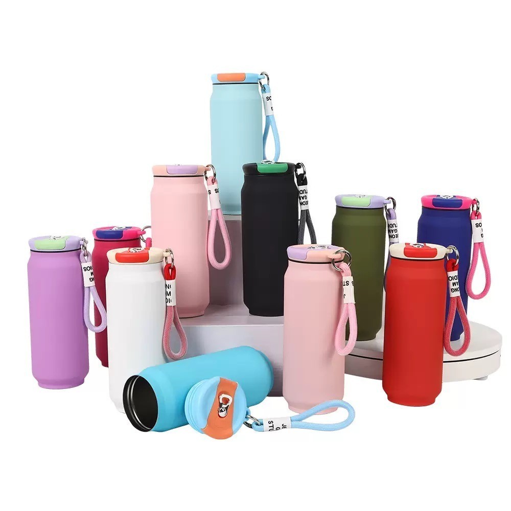 500ml copo térmico de aço inoxidável macaron copo de carro de capacidade tinta de borracha lata de cola,corda de mão