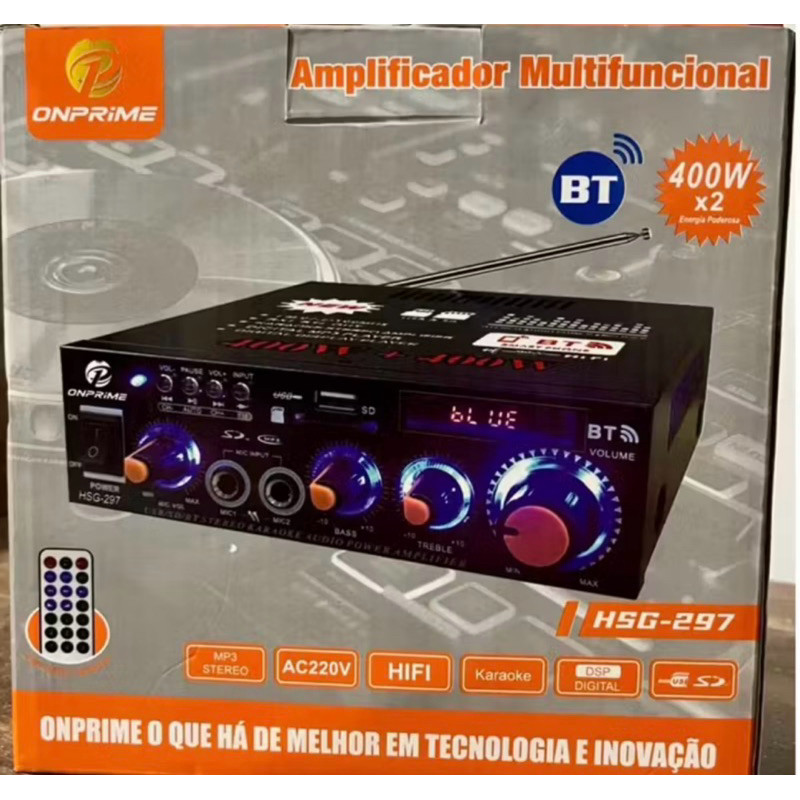 SUPER Amplificador Bluetooth 1200W 220v 2 Canais C/ Equalizador USB SD FM Karaokê 4x P10 MICROFONE