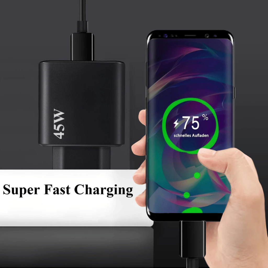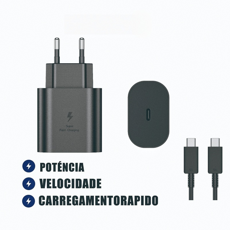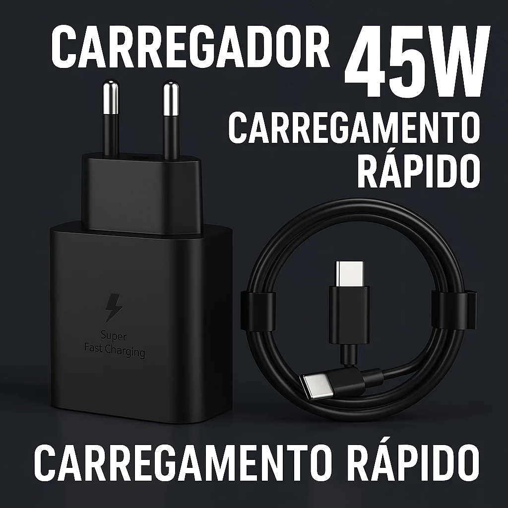 Carregador Turbo 45W rápido Carregue 3x Mais Rápido Cabo Tipo-C 1 Metro,Carregador para Android