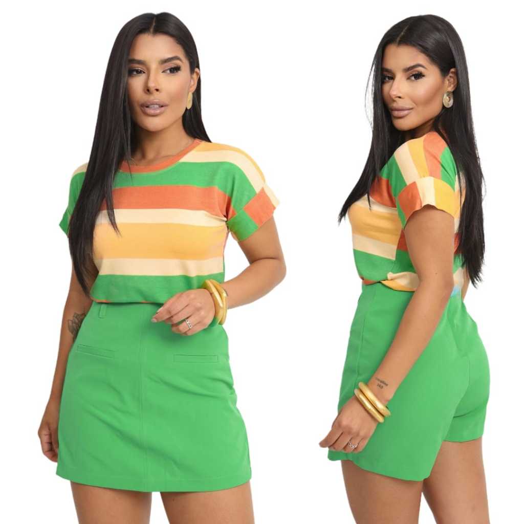 Blusa Camiseta Básica listrada Feminina Moda Verão Tendencia Inverno Manga Japonesa Estilosa e Moderna Blogueira Gringa