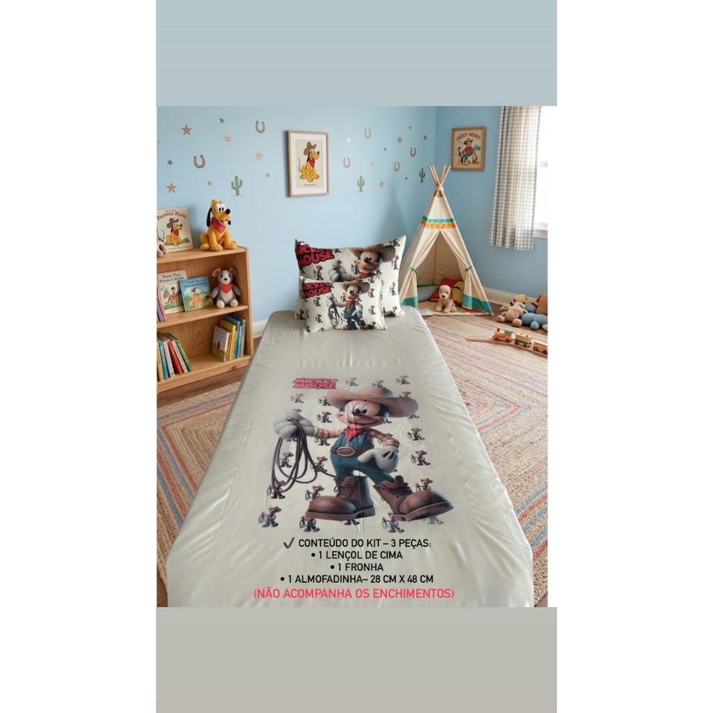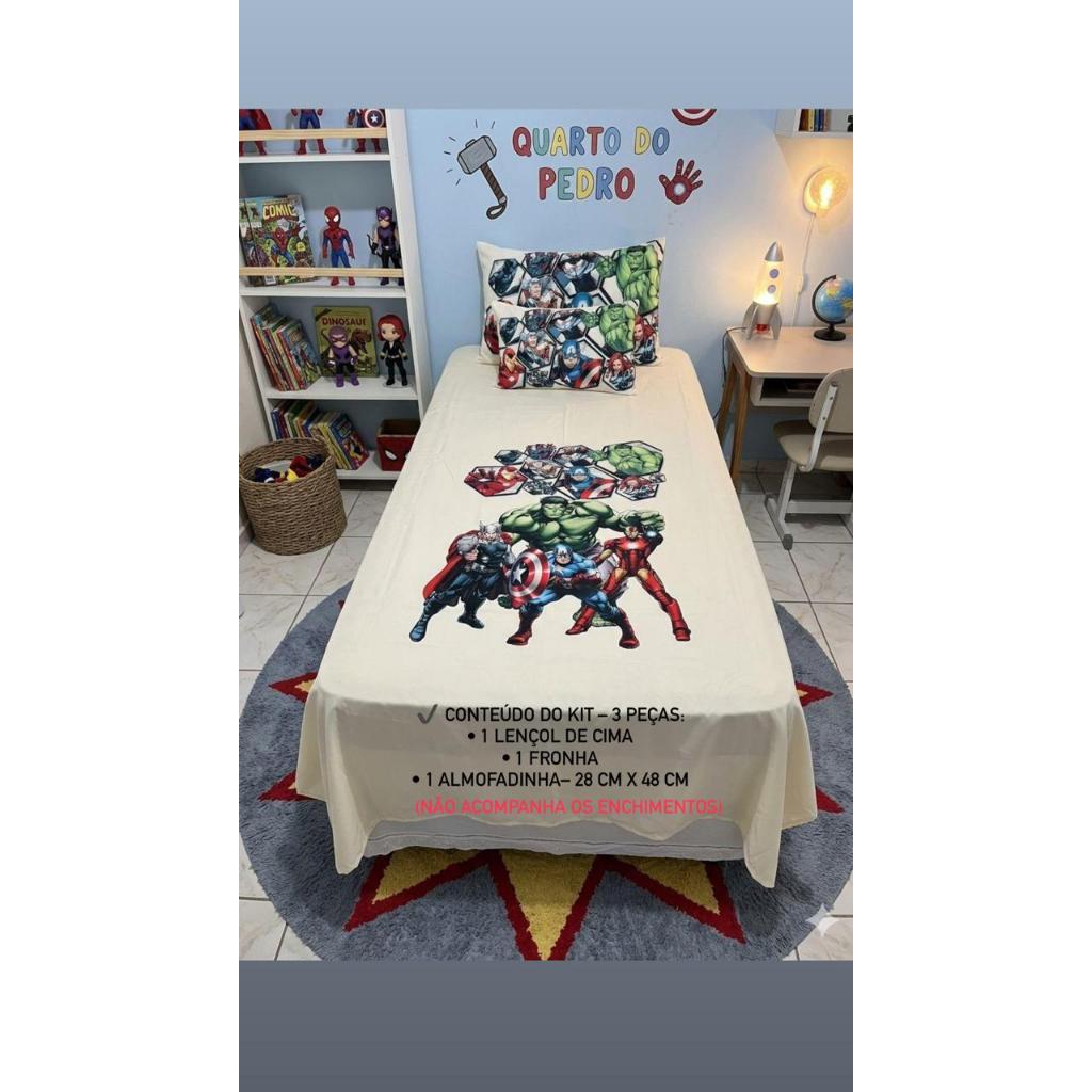 Kit Lençol Infantil Solteiro com Personagens – Toque de Algodão, Macio e Confortável 1,50 x 2,45