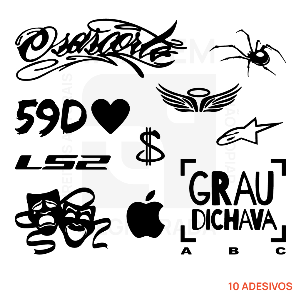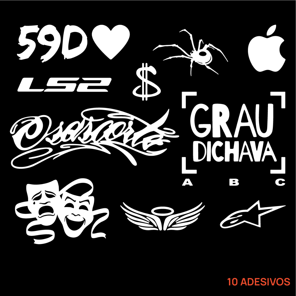 Kit Cartela Adesivos Moto Chave Grau Bike Capacete Viseira Tanque Osascorte Grau Dichava 59D