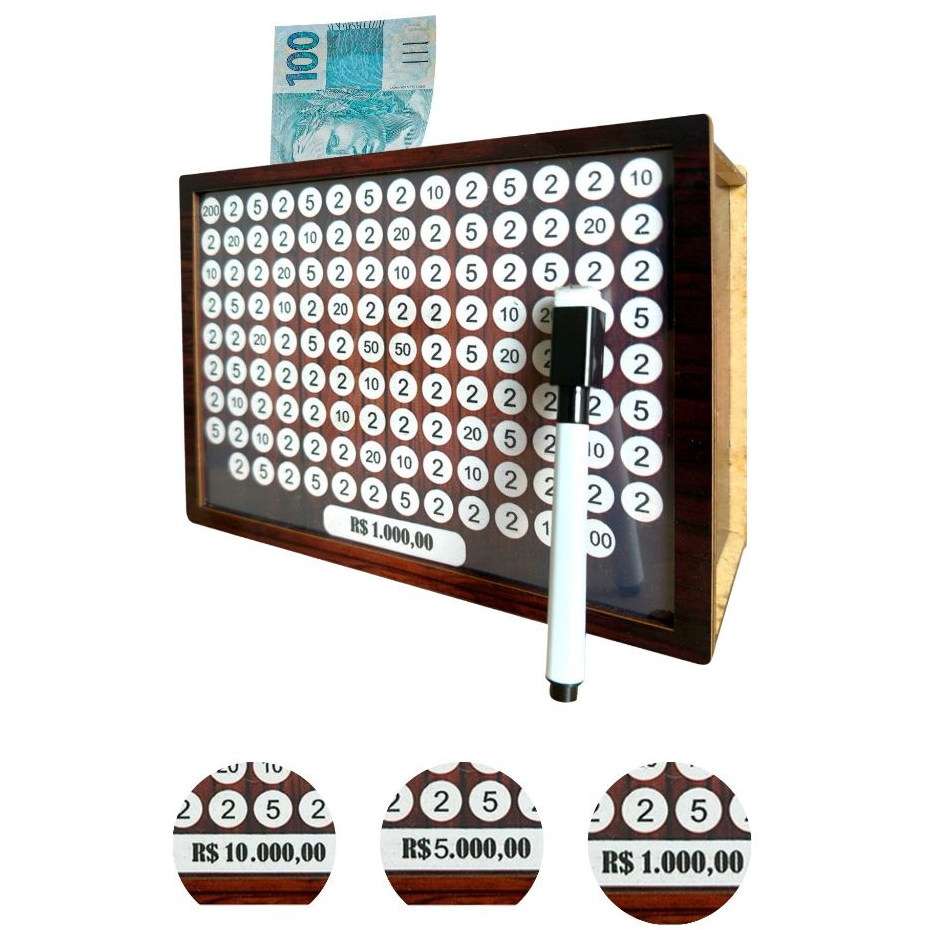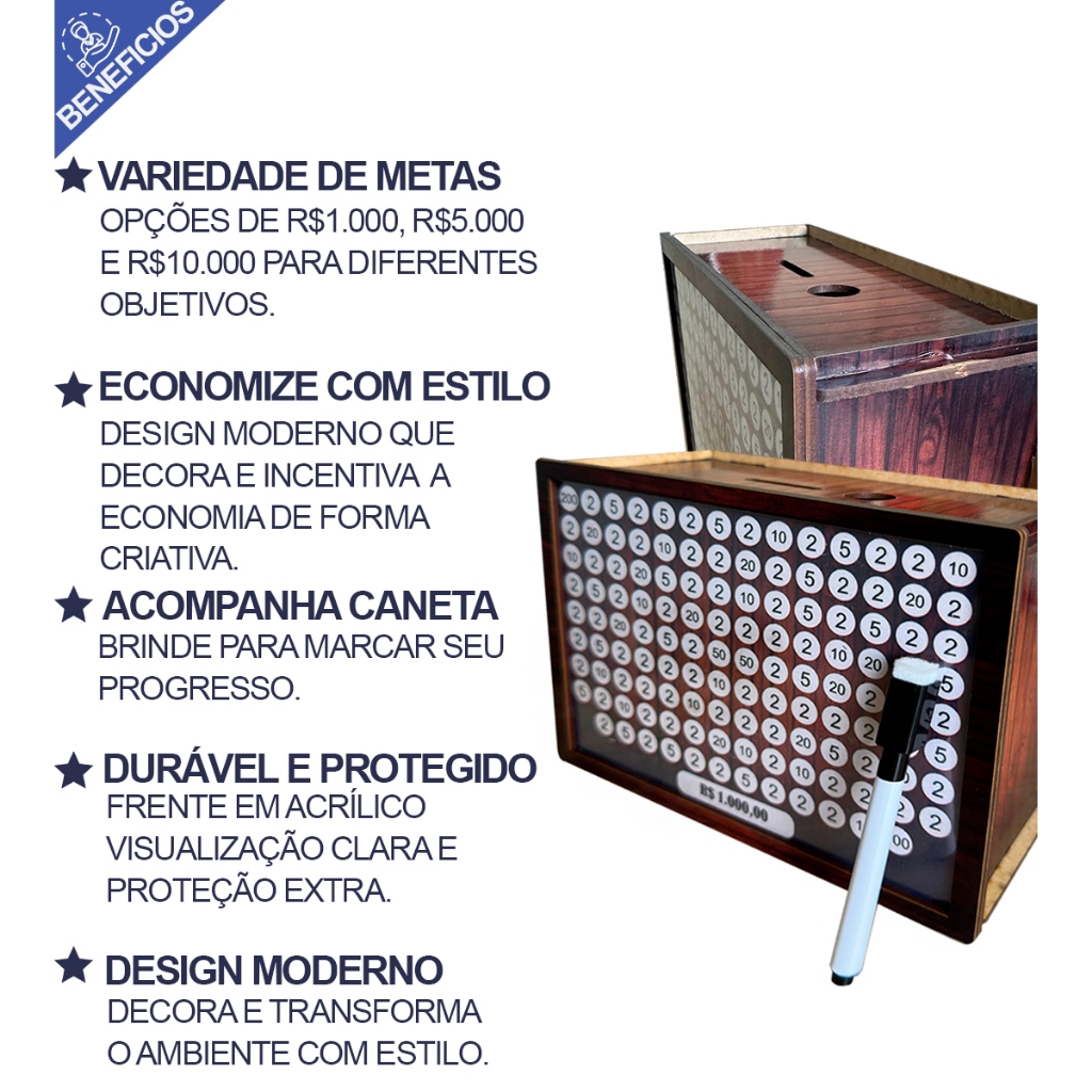 Cofre MDF Decorado Desafio 1K 5K 10K | Caixa Econômica Método Japonês p/ Economizar Organizar Metas
