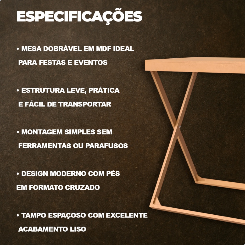 Mesa Cavalete MDF Cru 80×60×85 cm Festa Decoração Aniversário Evento Cenário Doces