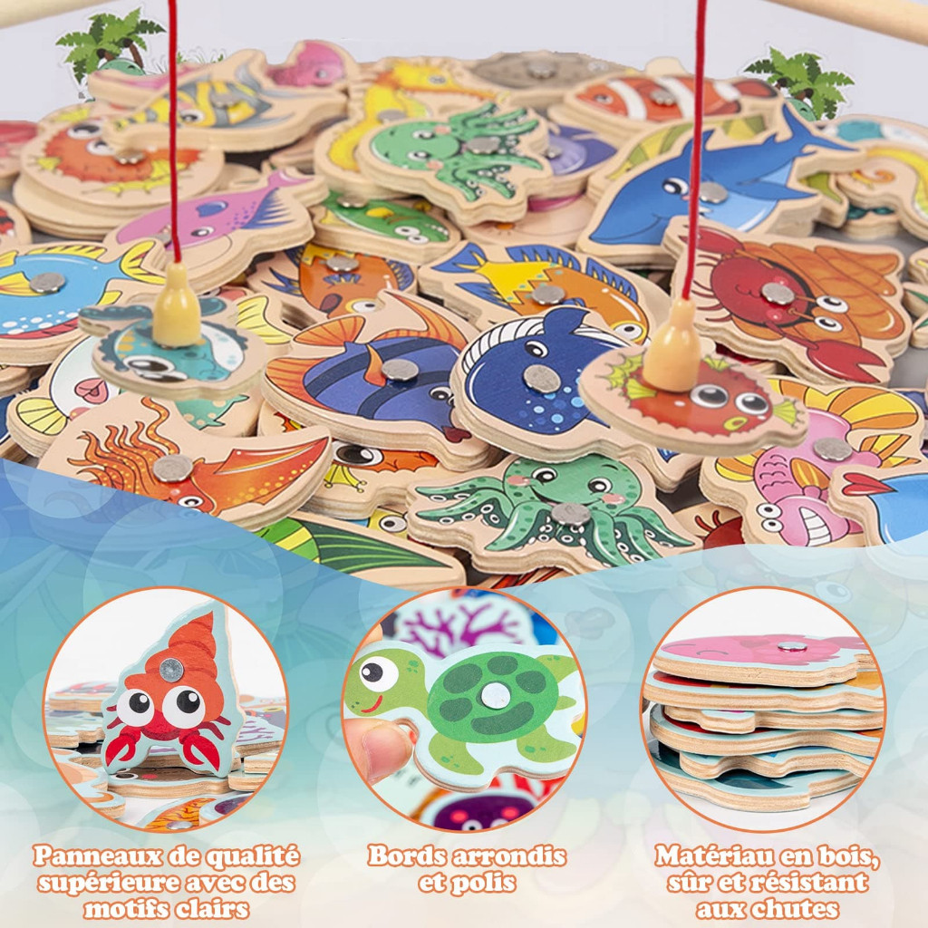 33 Peças Brinquedos Magnéticos De Pesca De Madeira/Jogos Educacionais Para Crianças Montessori/pesca peixe brinquedo