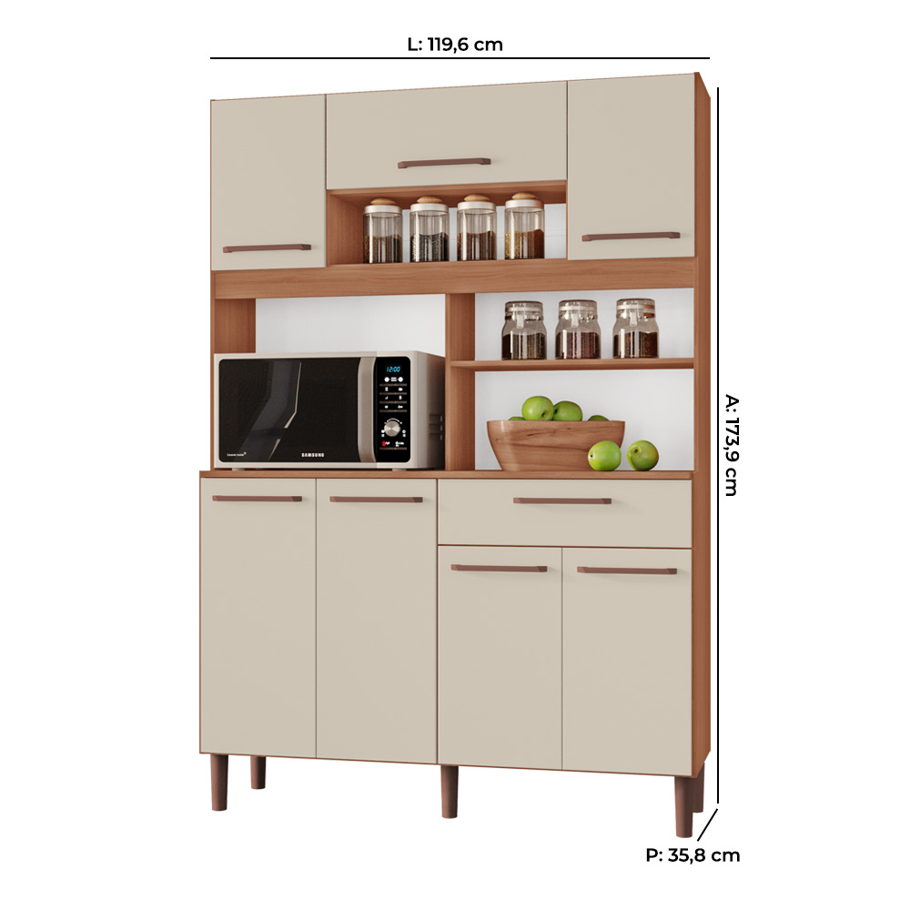 Armário de Cozinha Icaraí 100% MDF Tuboarte 7 Portas e 1 Gaveta
