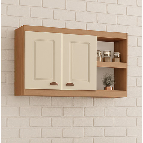 Armário Aéreo Grande Cozinha Jéssica New 100% MDF Tuboarte 2 Portas 2 Nichos
