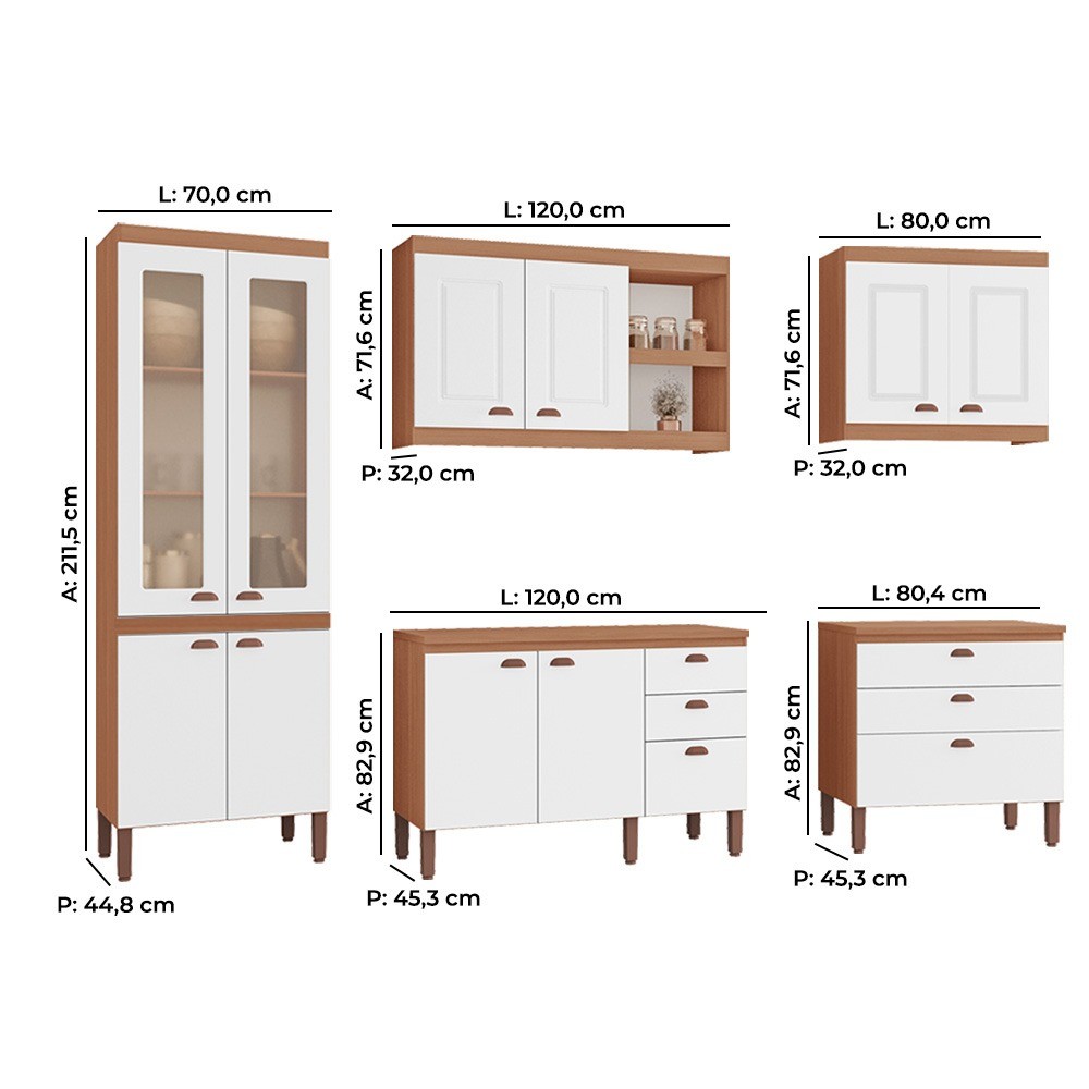 Armário de Cozinha Jessica Tuboarte 100% MDF com 2 Balcões Independentes 10 Portas e 6 Gaveta
