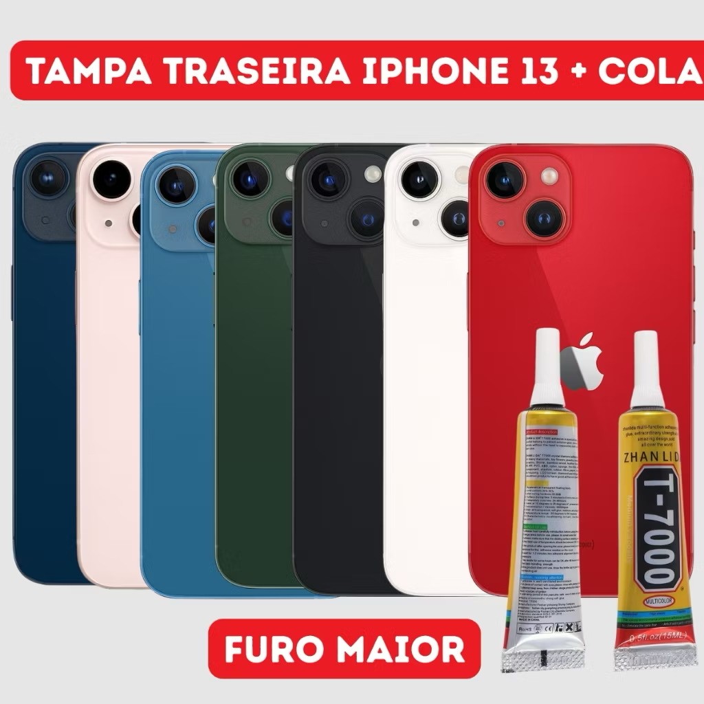 Tampa Vidro Traseira Para iPhone 13 COM FURO MAIOR + Uma COLA 15ML