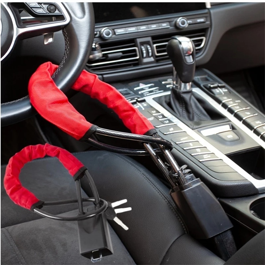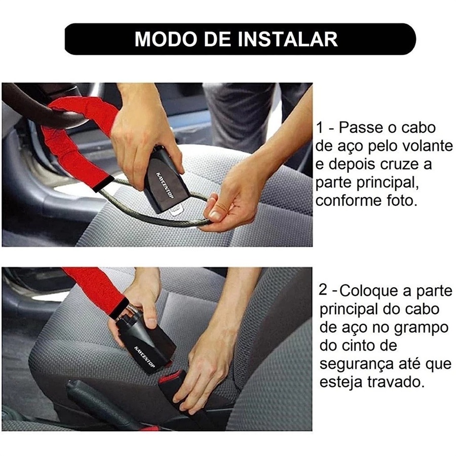 Trava de Segurança Cadeado 3 Chaves Antifurto Volante Cinto Veículo