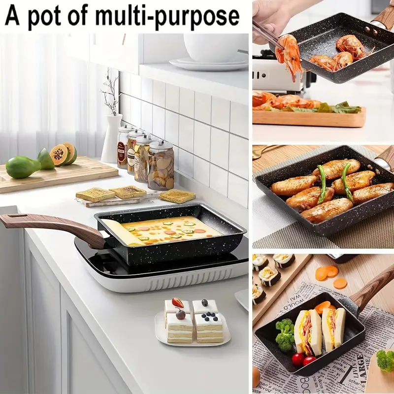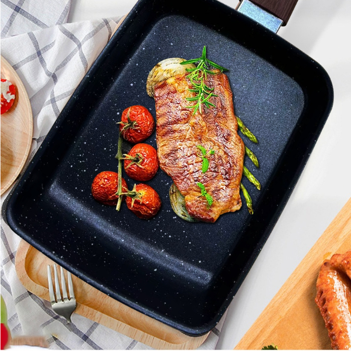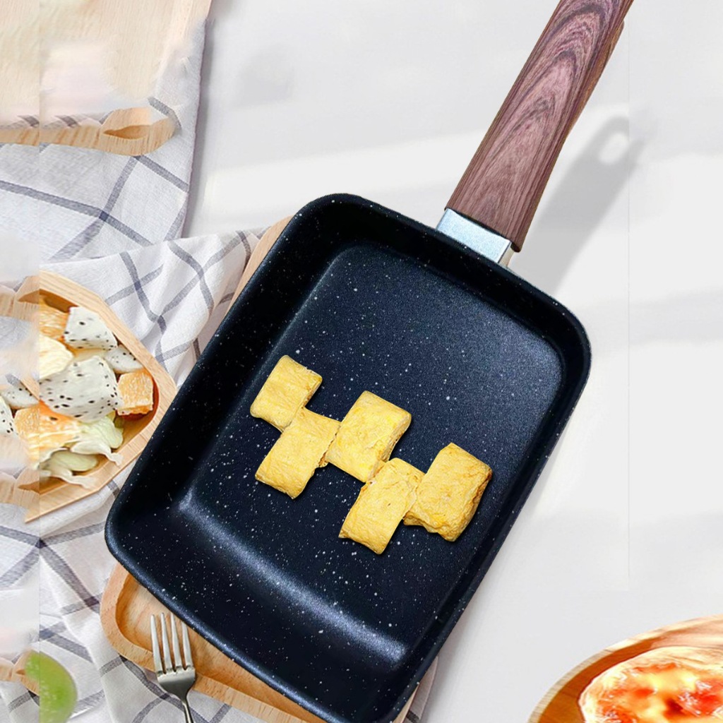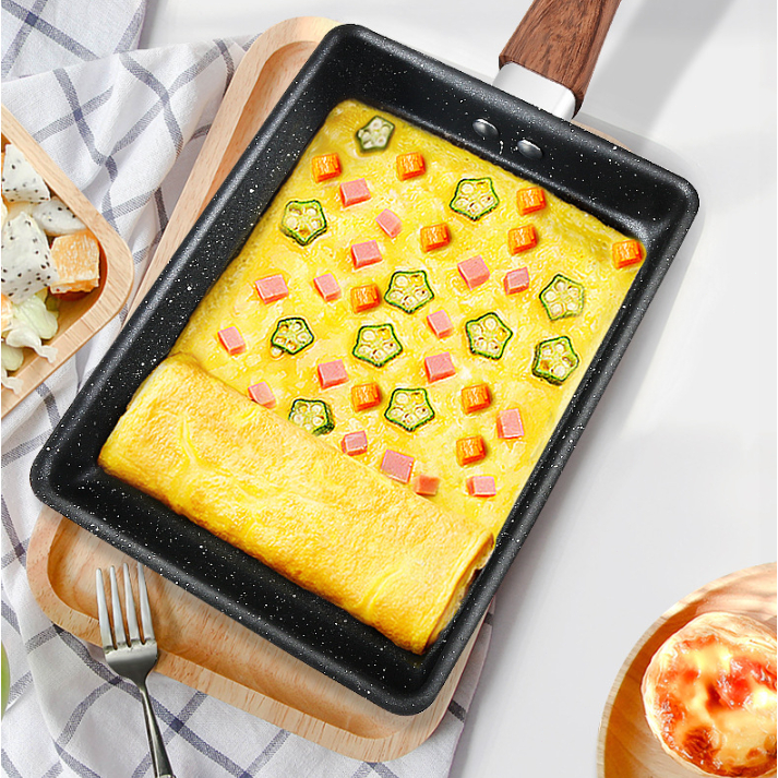 Panela japonesa grossa para panquecas, ovo grosso torrado tamagoyaki, bife antiaderente, fundo plano