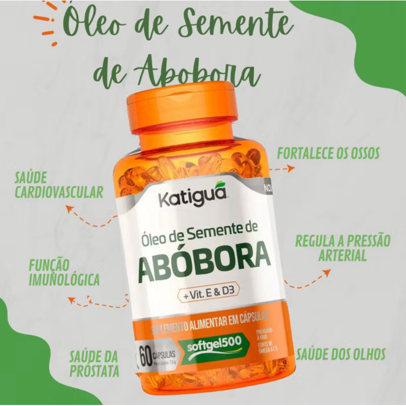 Óleo de Semente de Abóbora + Vitamina E + Vitamina D3 500mg 60Caps