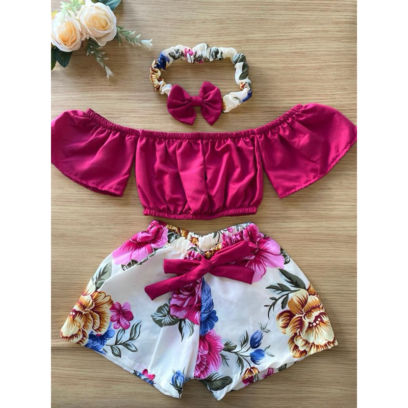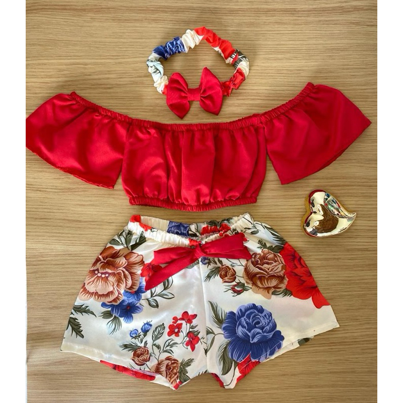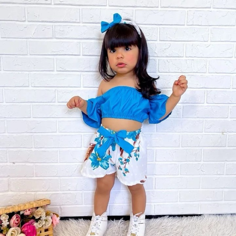 Ciganinha Azul (blusa+short+Tiara) 0 a 6 anos! Só hoje promoção conjunto infantil