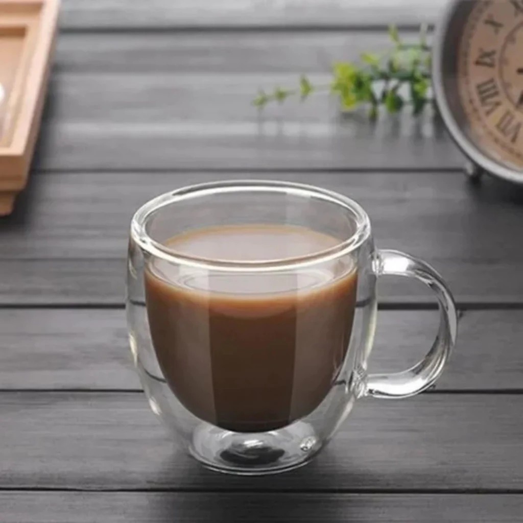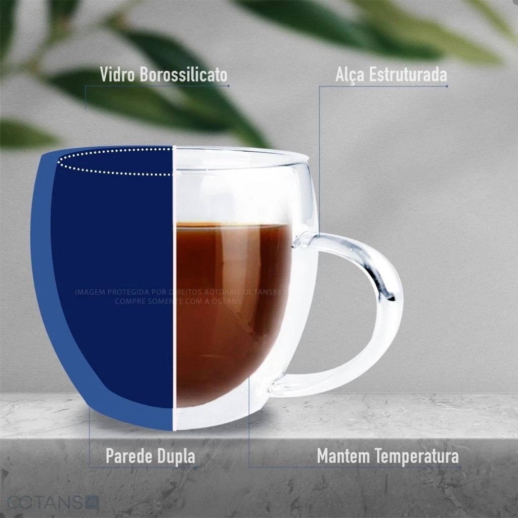 Xícara de Vidro com Parede Dupla 250ml – Elegância e Isolamento Térmico para Café e Capuccino