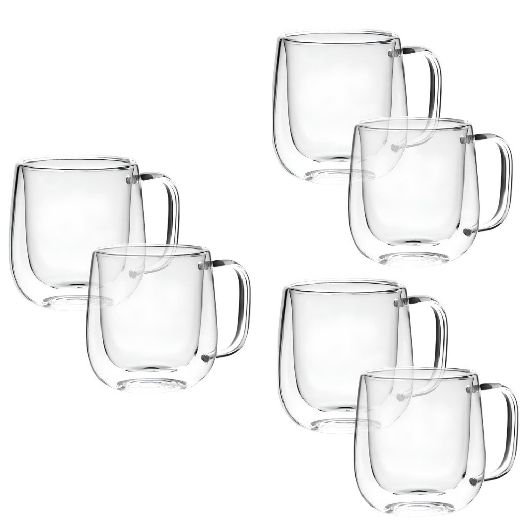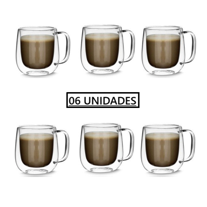 Caneca de Vidro Borossilicato Conjunto com 6 Unidades 250ml Parede Dupla