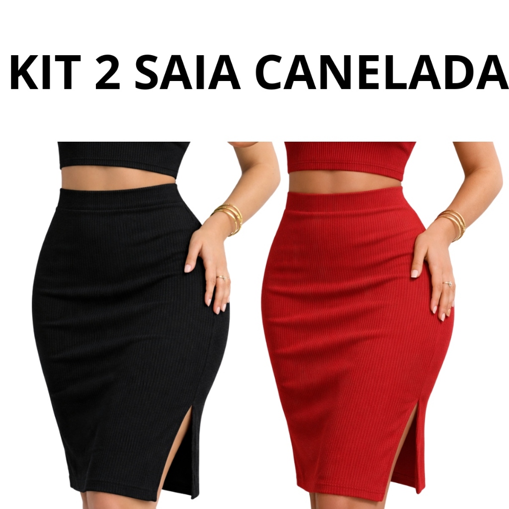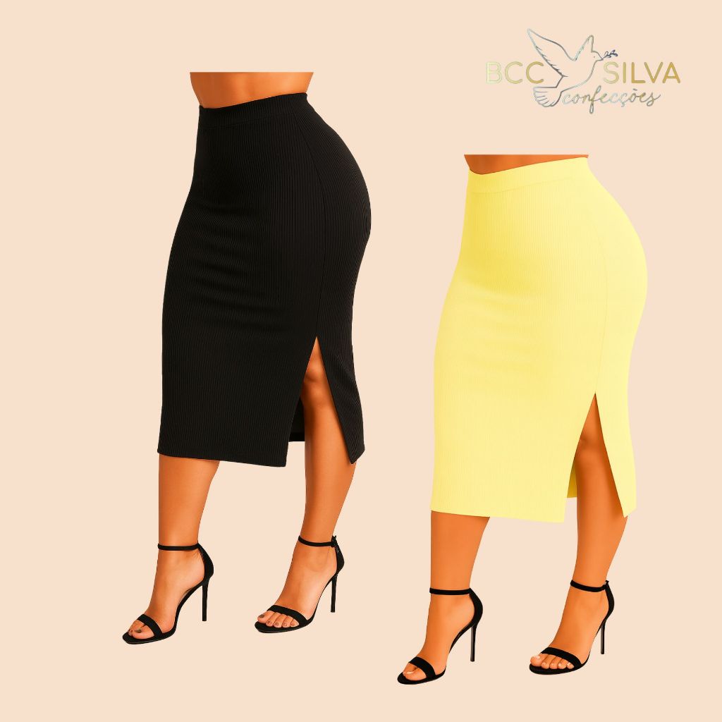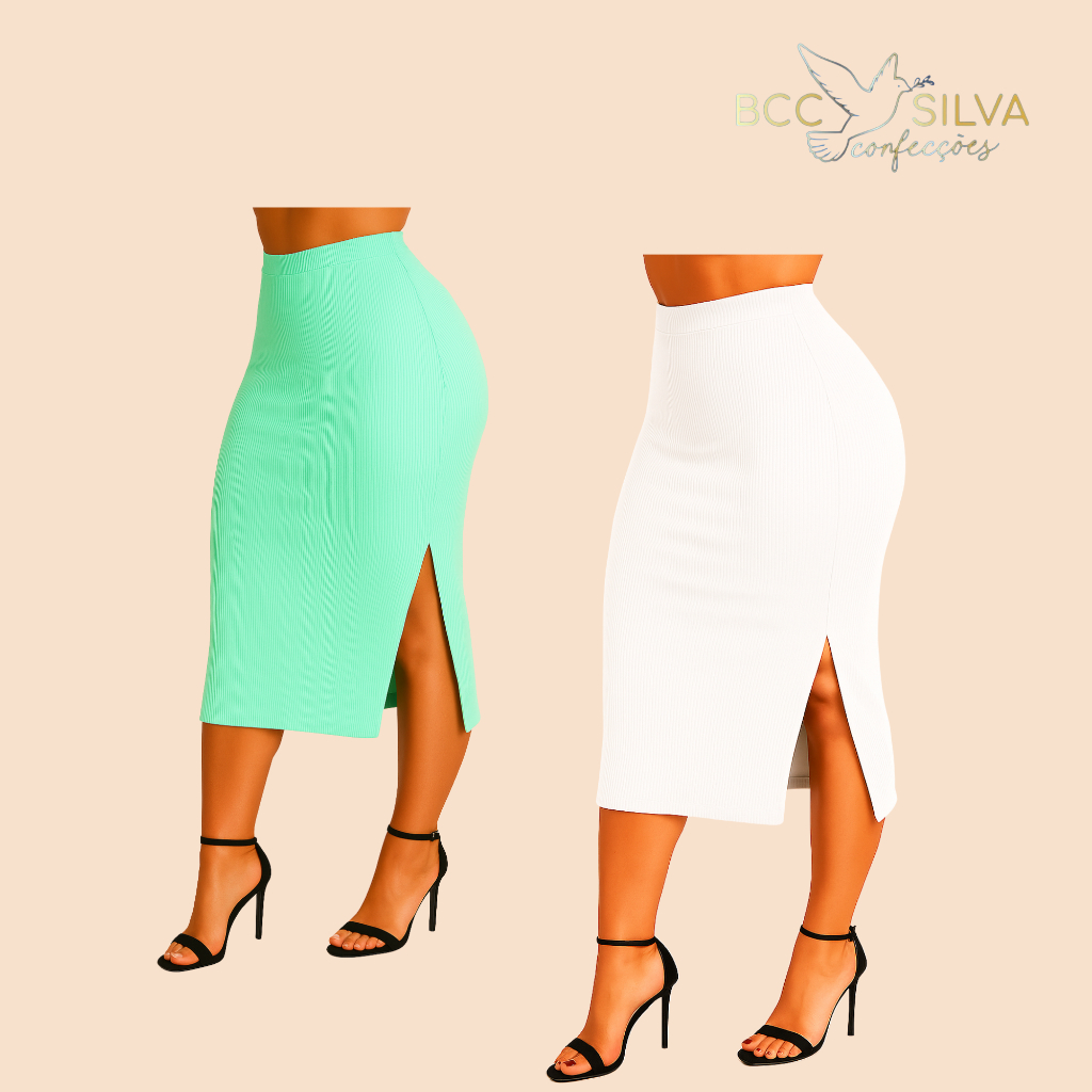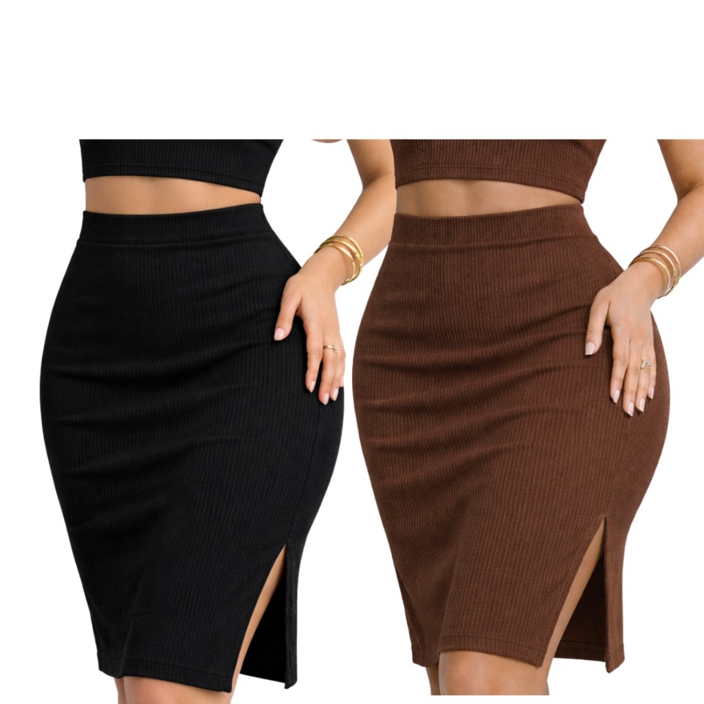 Kit 2 Saias Midi Feminina Com Fendas Laterais Cintura Alta Look Festas Fim de Ano
