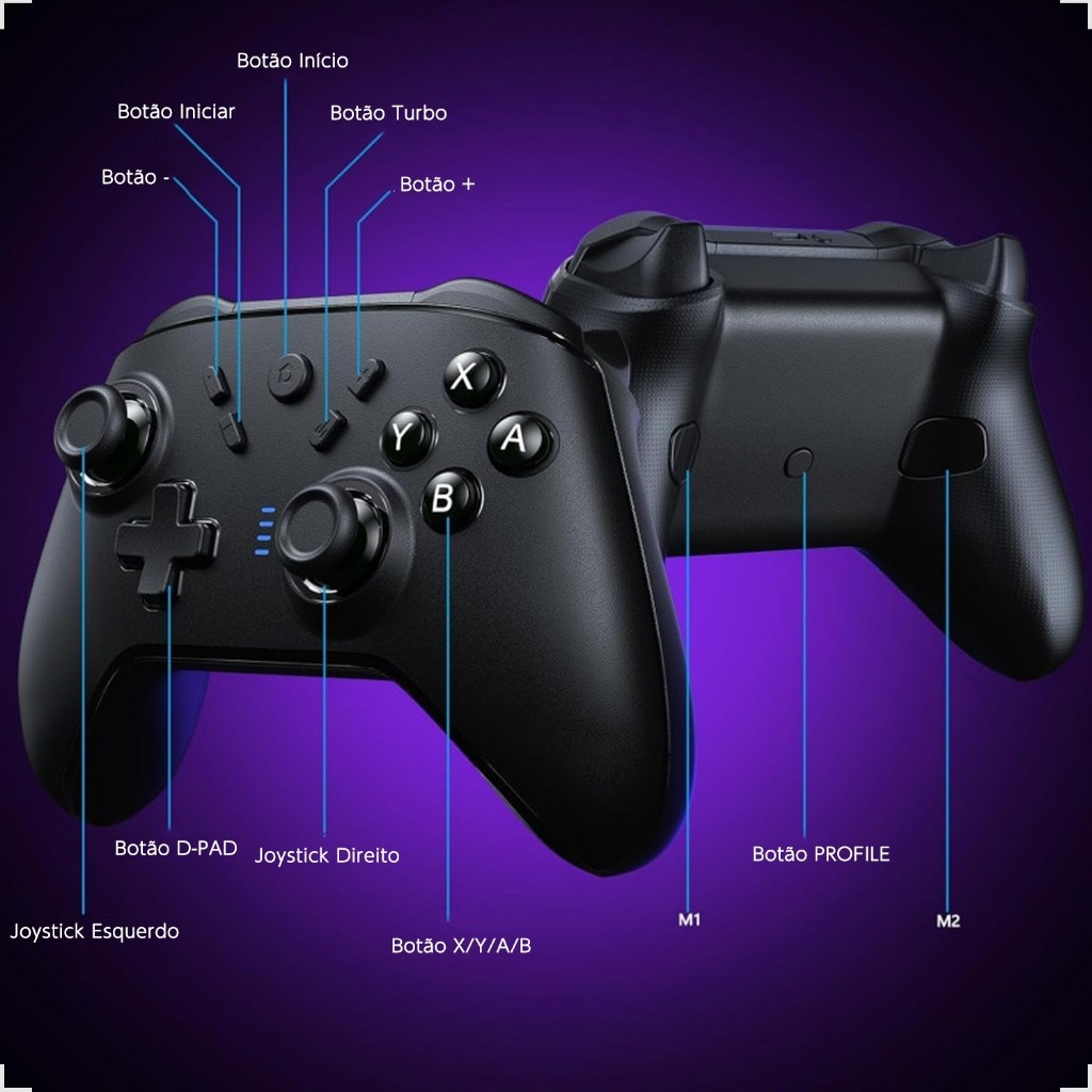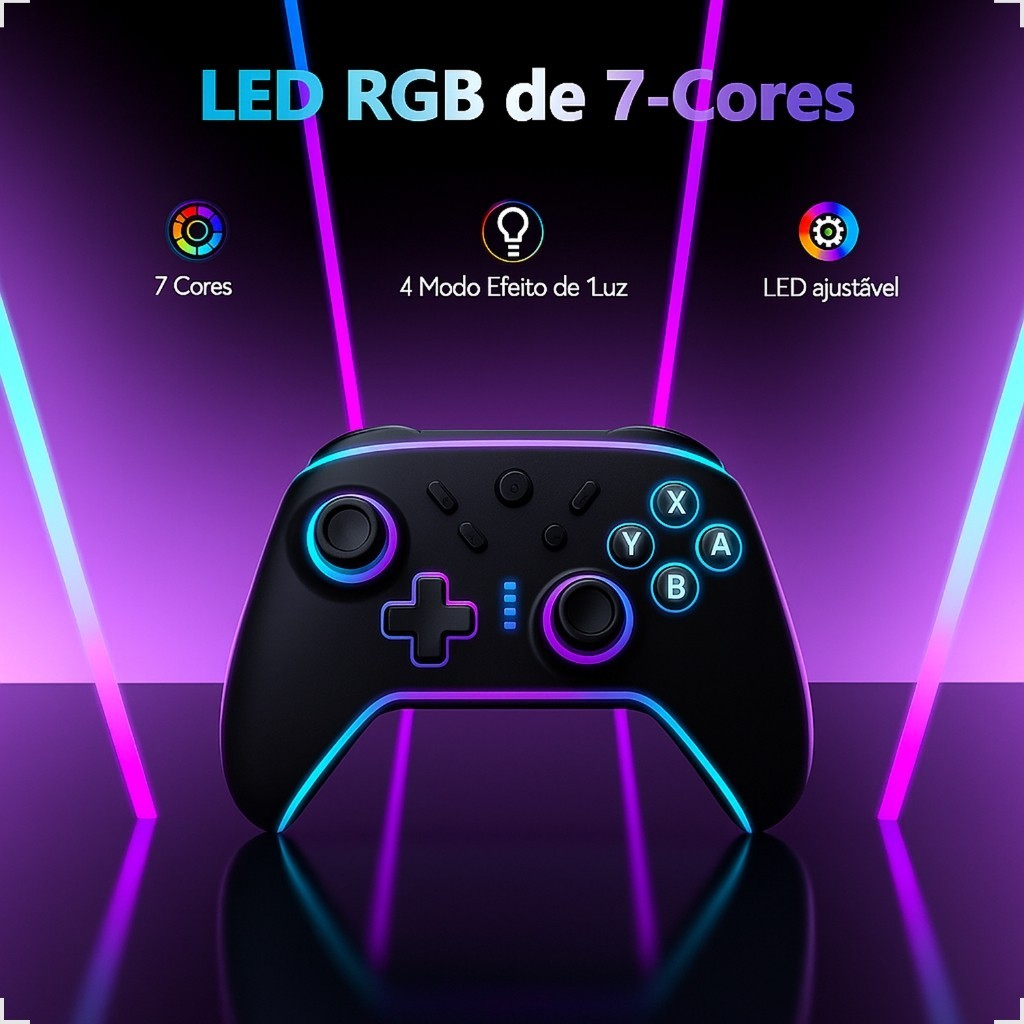 Controle Gamer Sem Fio Wireless Bluetooth Com Luz De Led RGB GM II SN2208