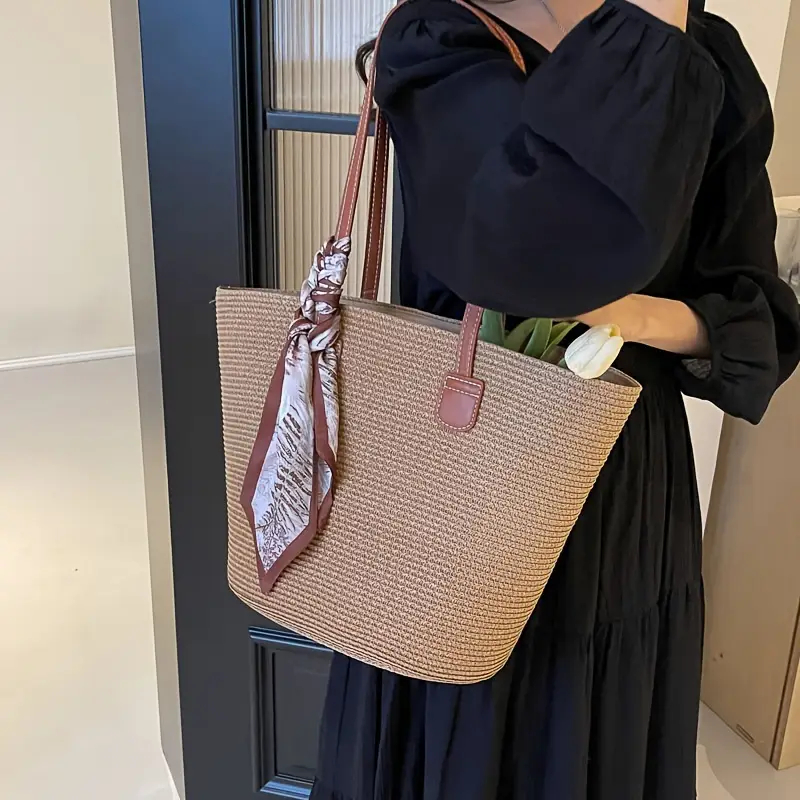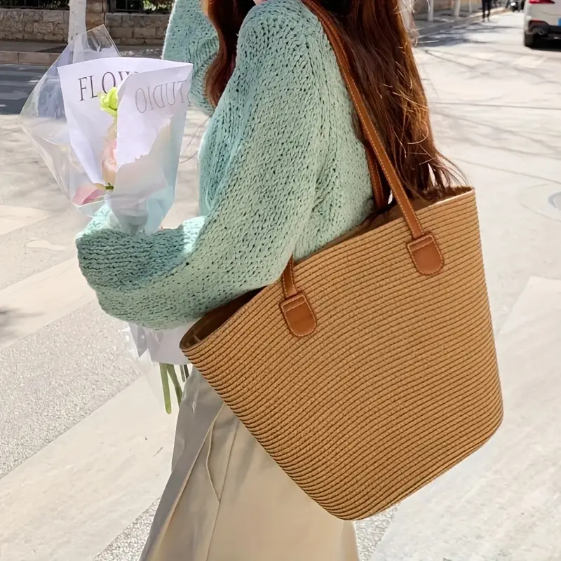 Bolsa de palha de grande capacidade para férias casuais praia portátil nova moda bolsa de ombro tecida