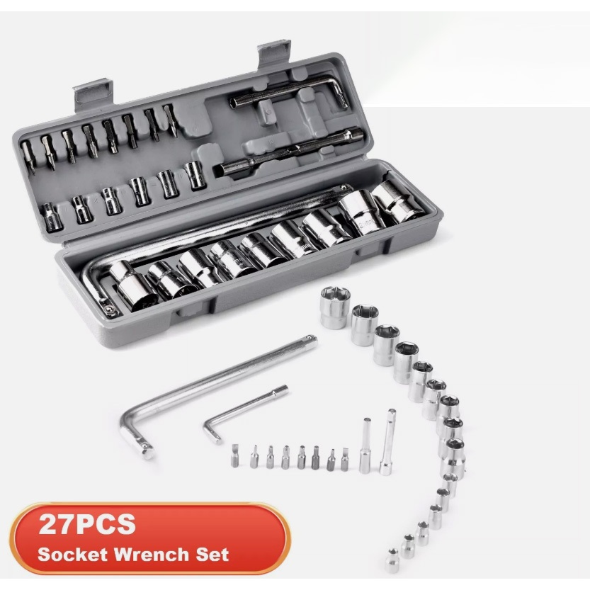 Kit Jogo De Ferramentas Soquetes 27 Peças Cromo Vanádio Completo Titanium