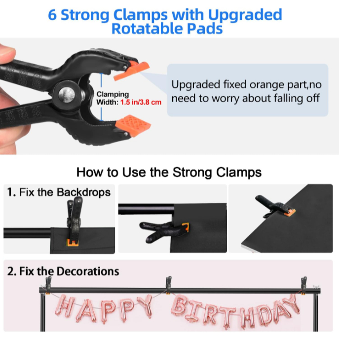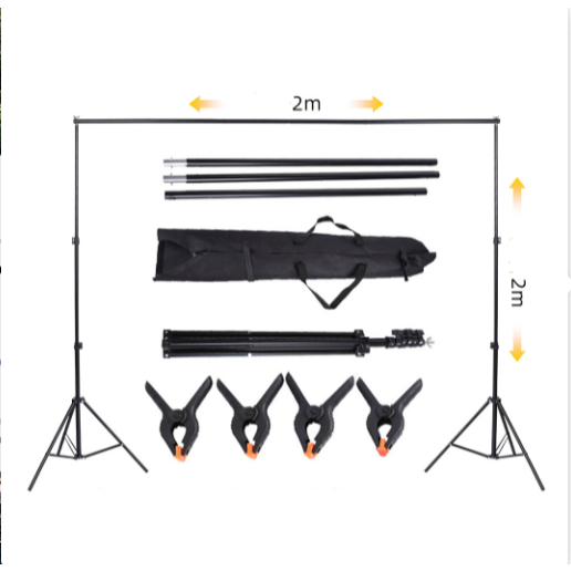 Suporte de fundo infinito 2*2m + 4 clipes fortes + 3 barras transversais + 2 suportes de luz + 1 bolsa