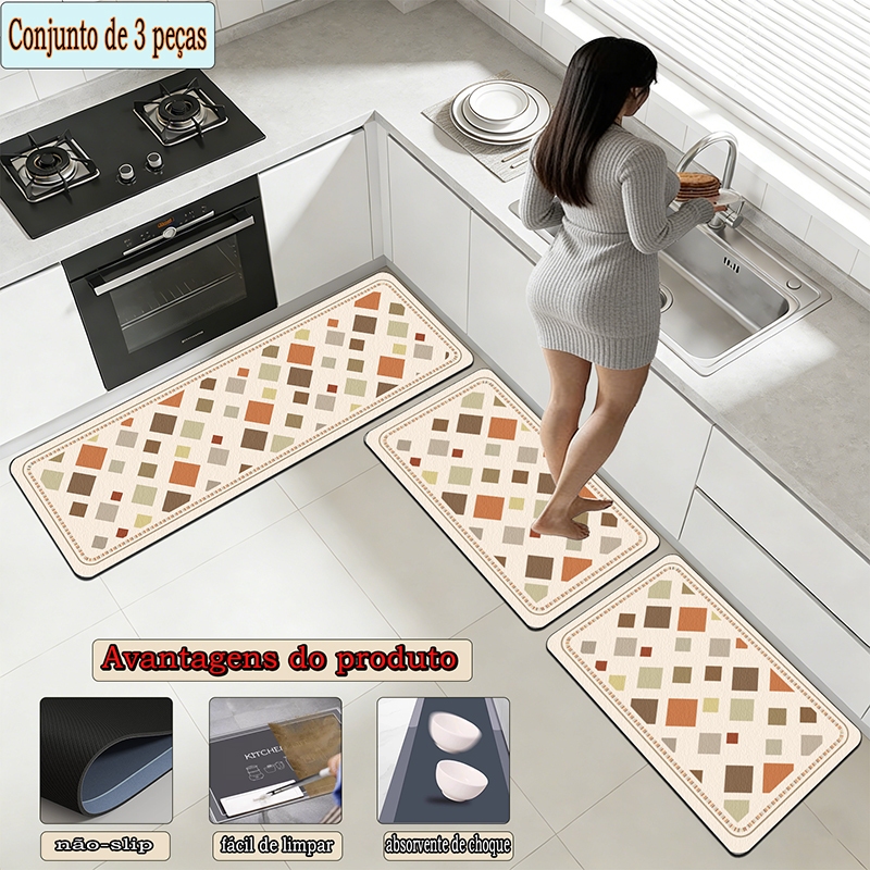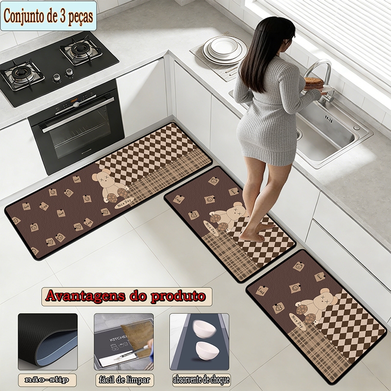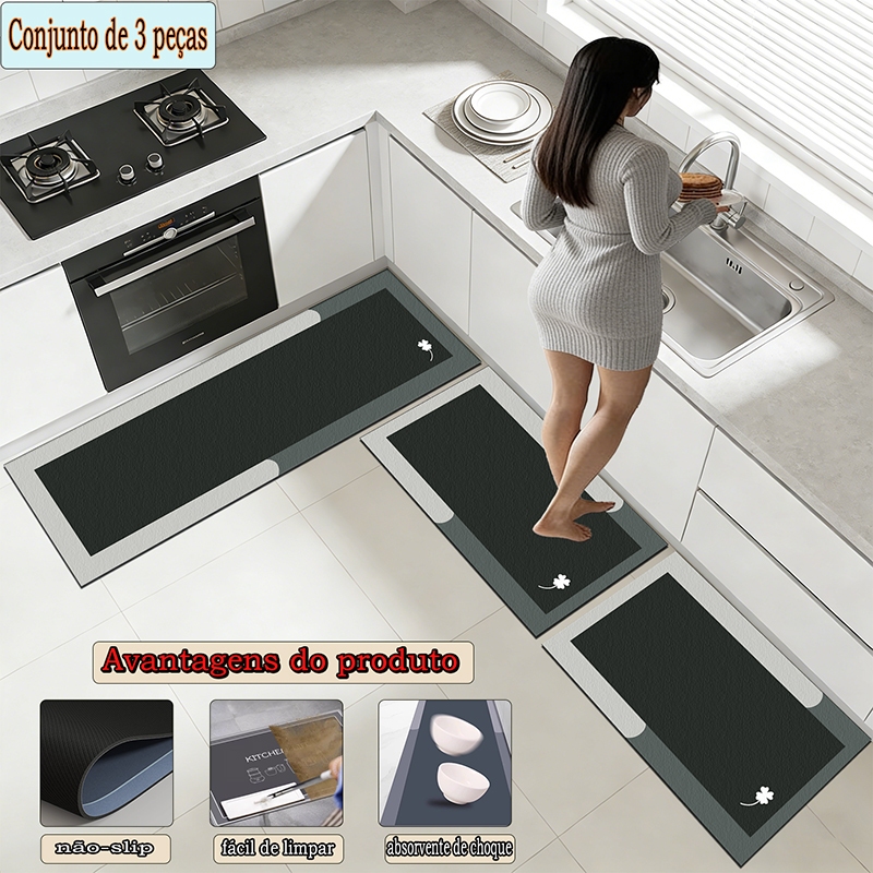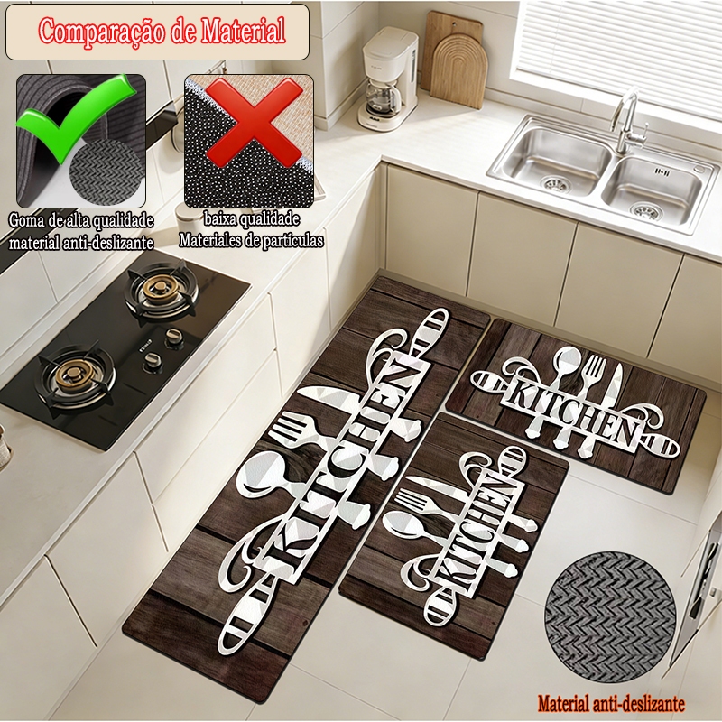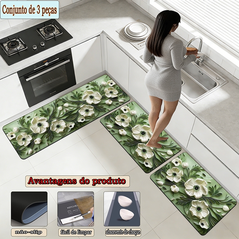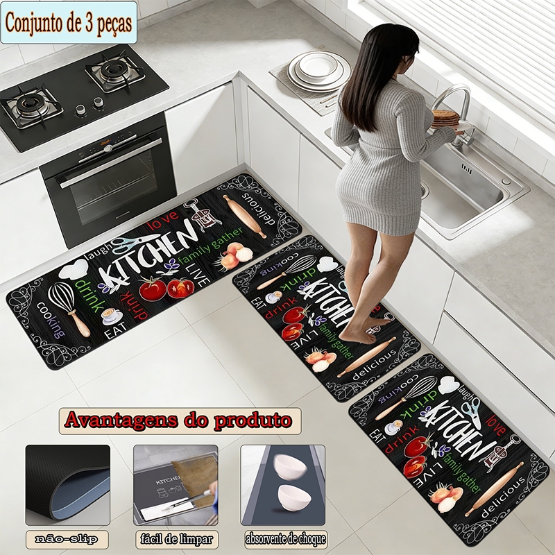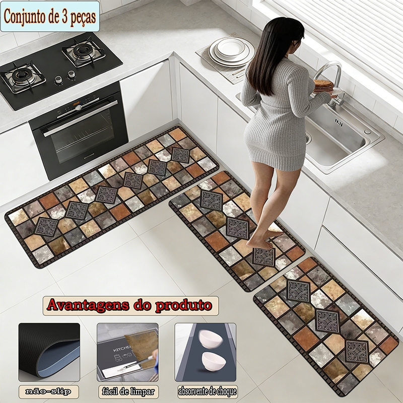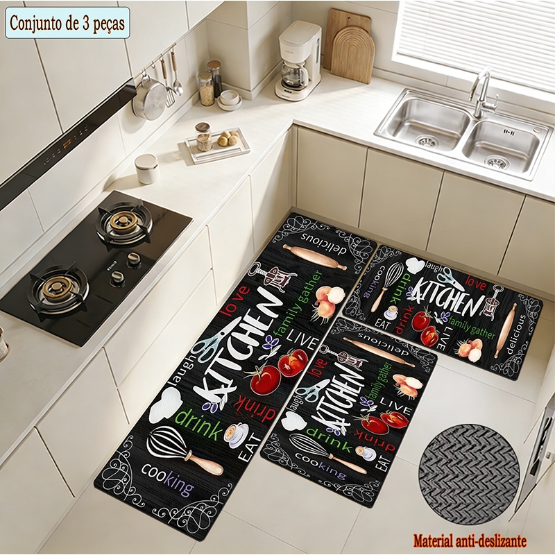 apetes de Cozinha 3 Peças Antiderrapante Emborrachado