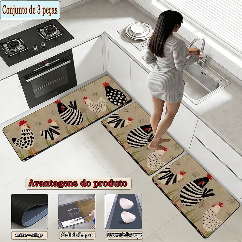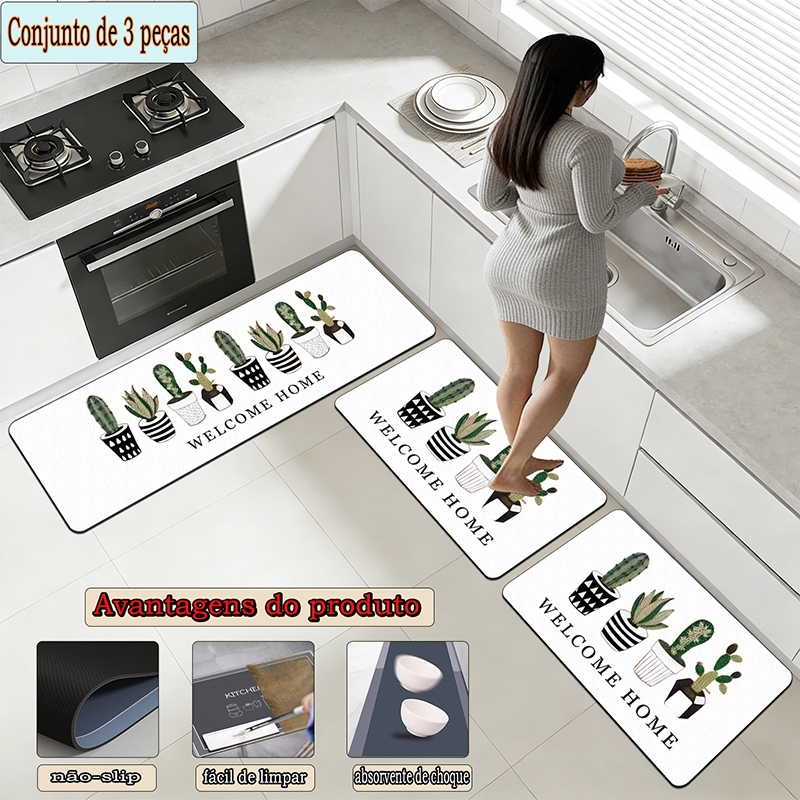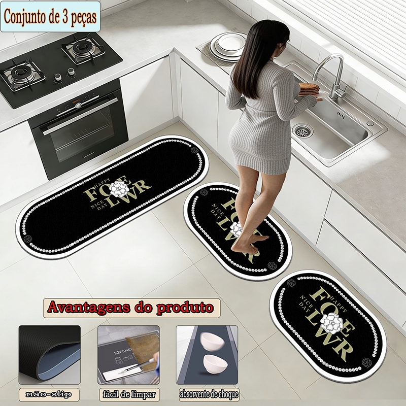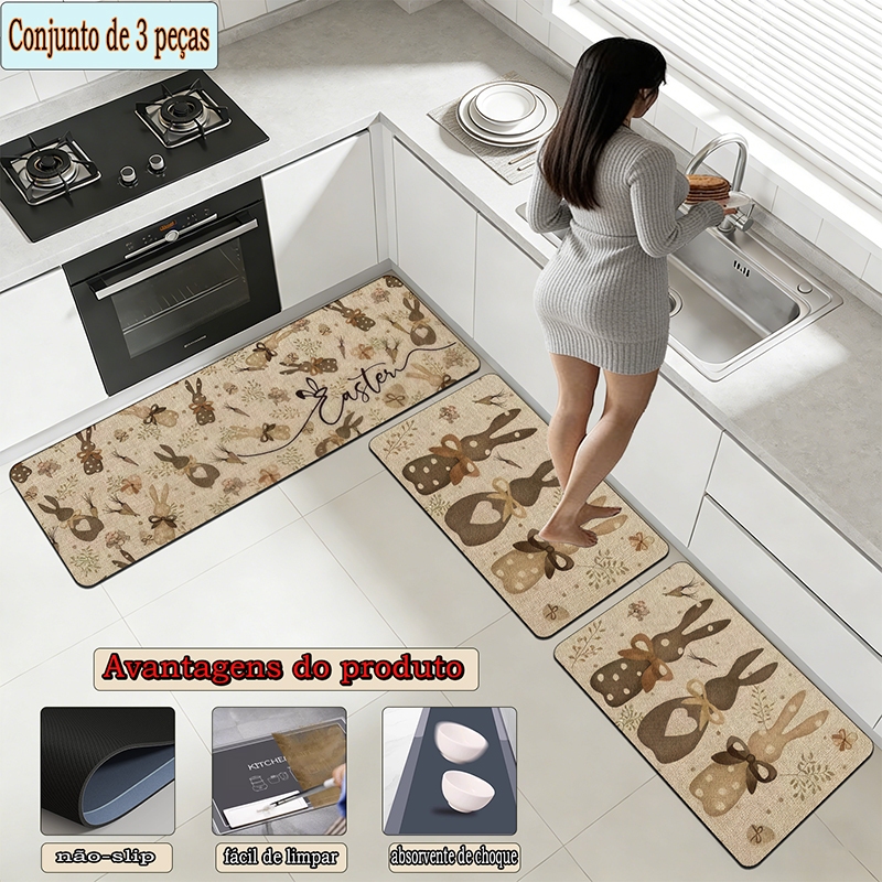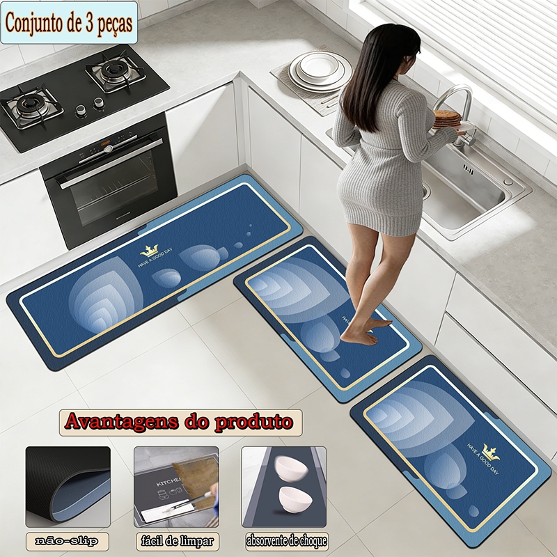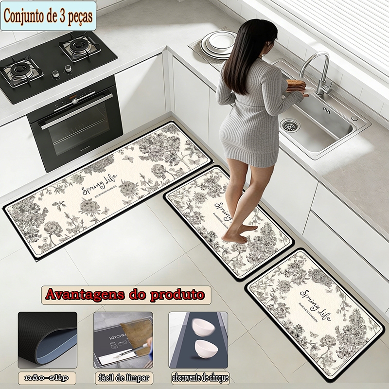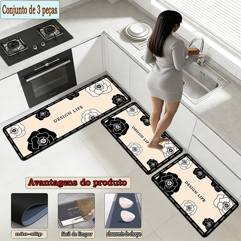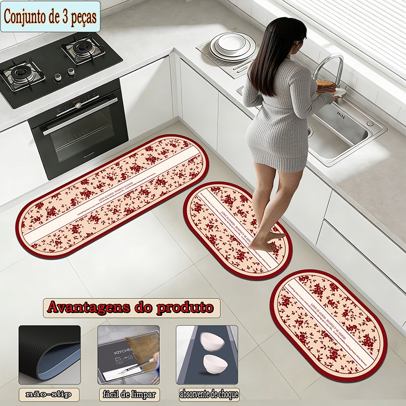 apetes de Cozinha 3 Peças Antiderrapante Emborrachado