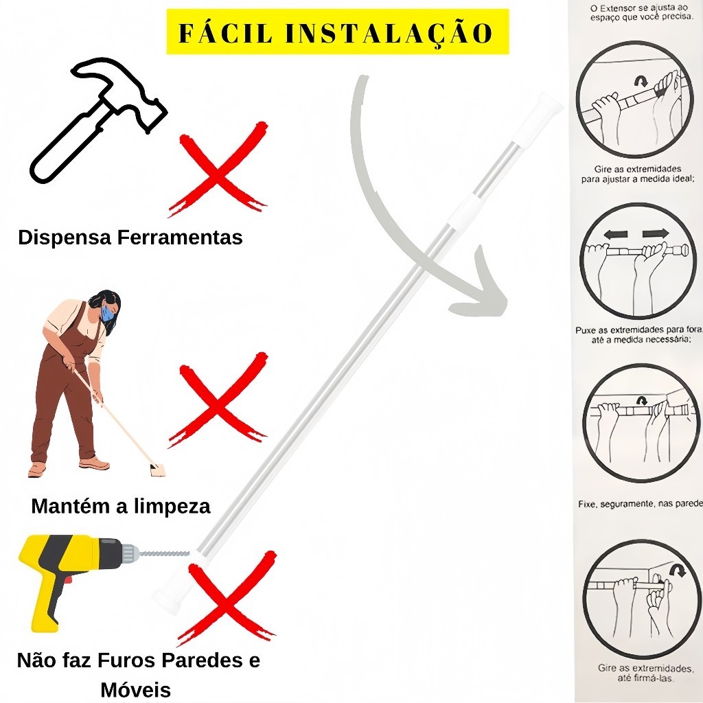 Varão Extensivel Grande Maior Medida Em Inox Resistente Porta Cortina De Box E Banheiro Multiuso