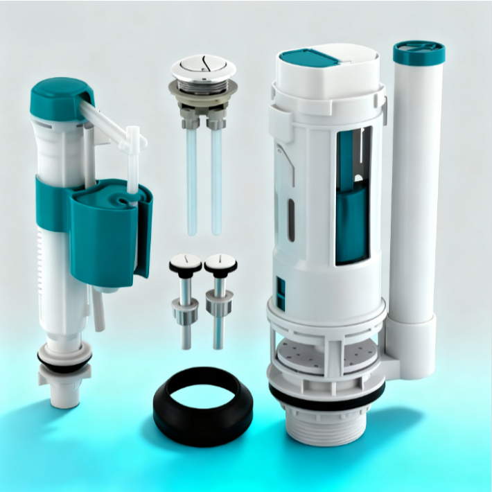 KIT MECANISMO DE Descarrega Duplo–Caixa Acoplada, Modelo Universal, Acionamento Superior (Completo)