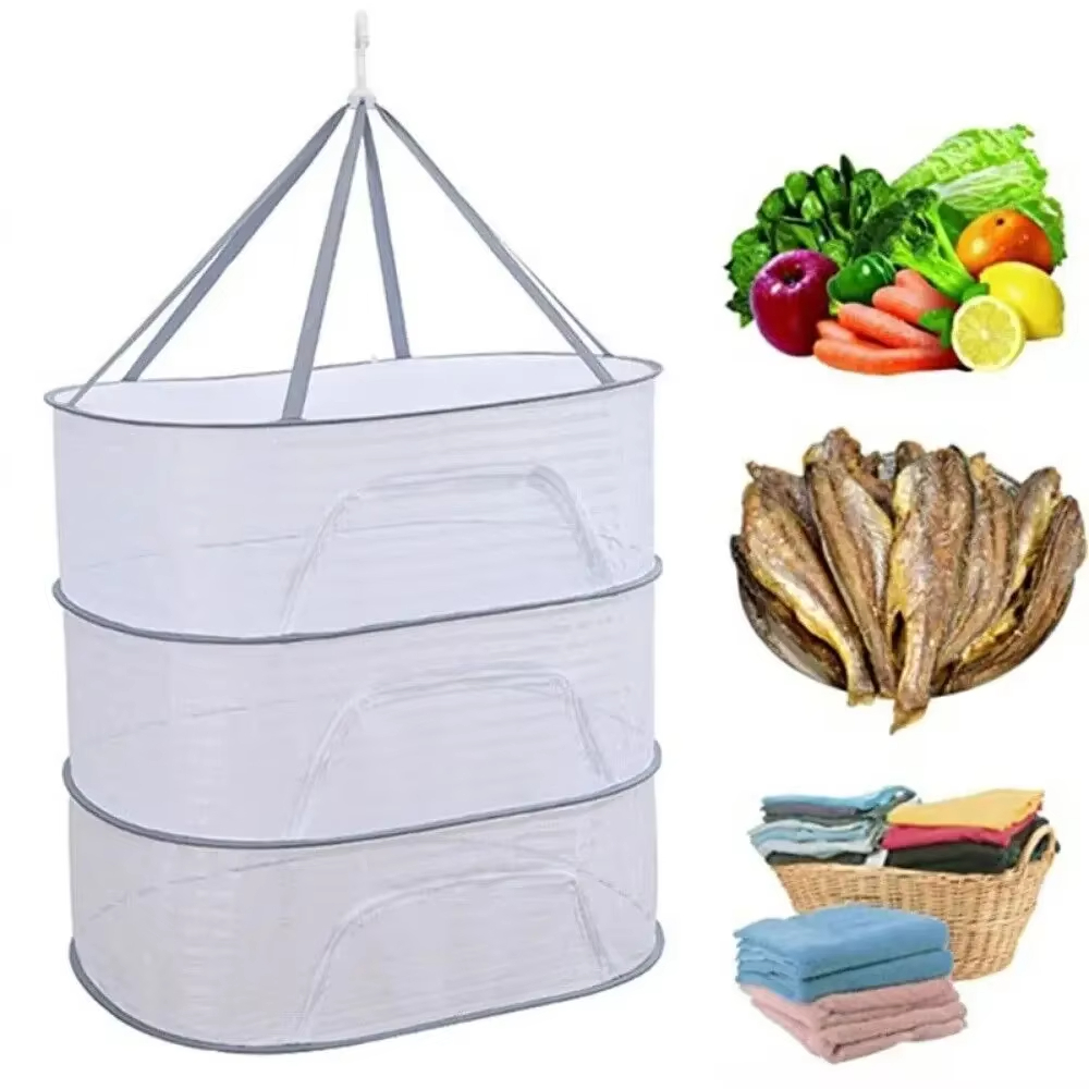 Rede De Secagem De Vegetais Seca Três Camadas Anti-Mosquito Peixes Forte E Durável Produtos Secos
