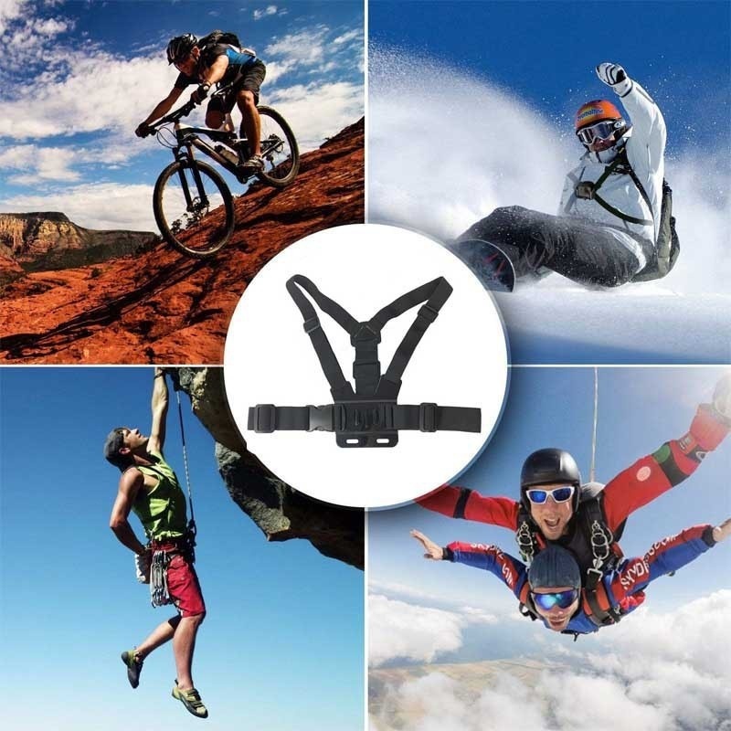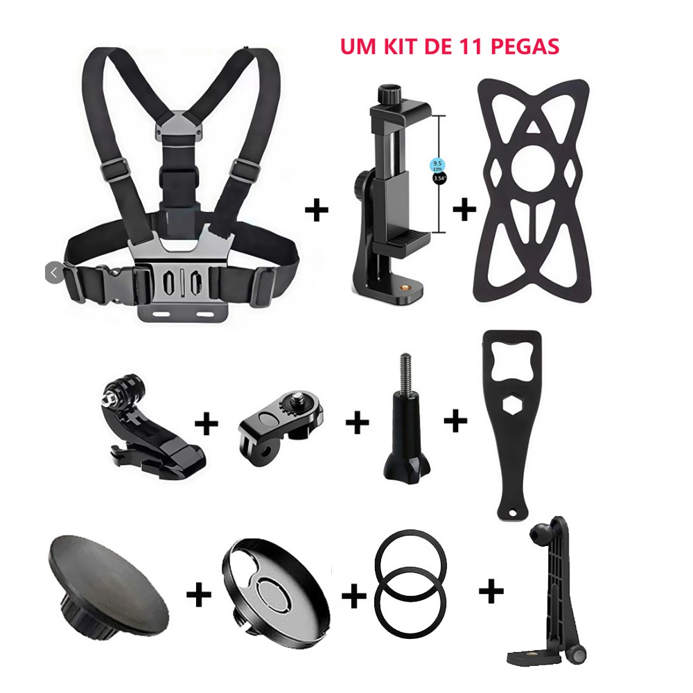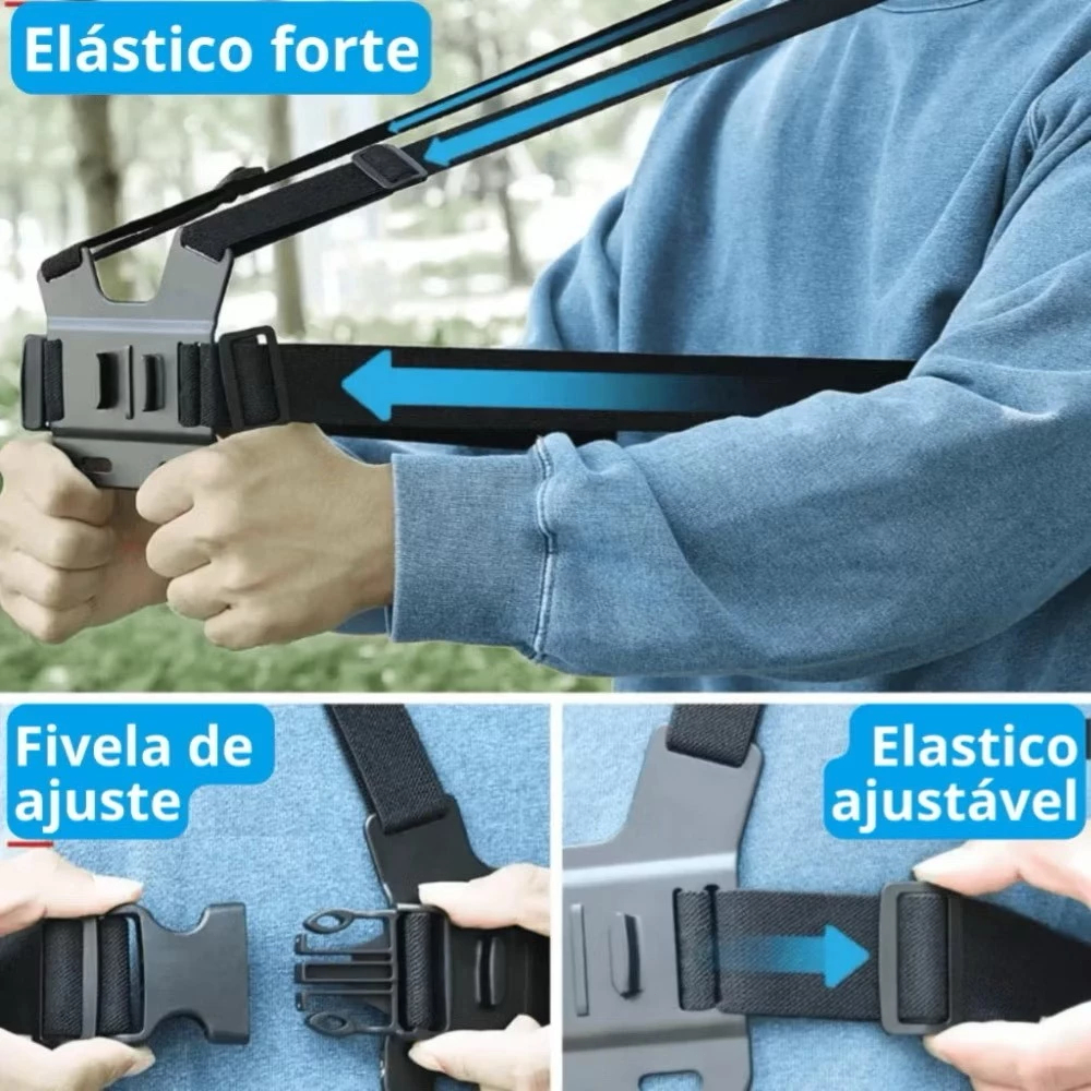 Kit 7 conjuntos de suporte de peito ajustável | Adequado para celular + câmera esportiva (GoPro)| Função Anti-vibração