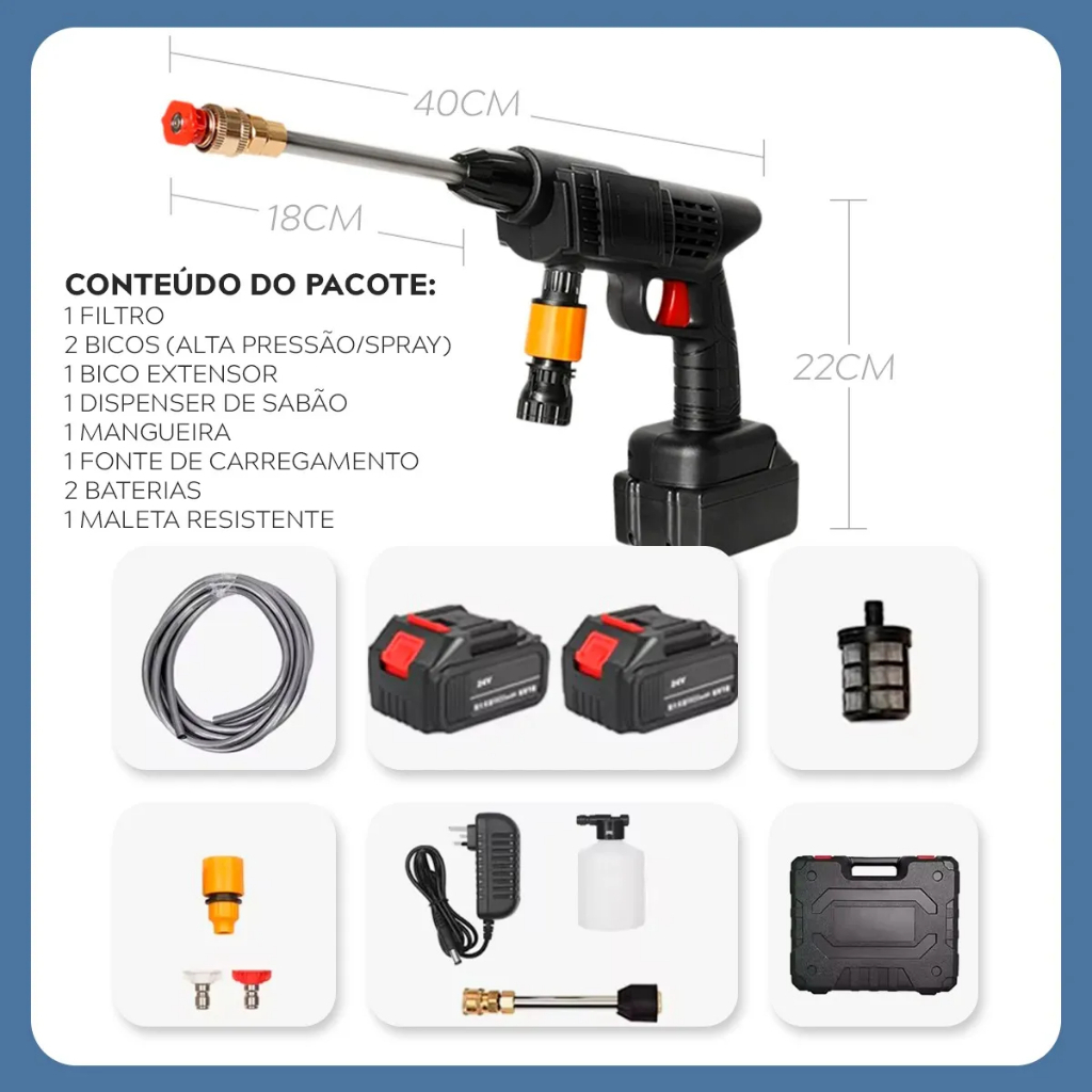 Lavadora de Alta Pressão Portátil Recarregável Para Carros E Jardins Linha Premium Pistola Lava Jato Profissional