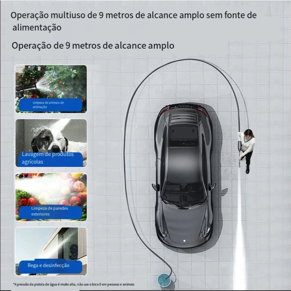 Lavadora de Alta Pressão Sem Fio Portátil Recarregável Carros e Jardins Pistola Lavajato Residêncial Bivolt