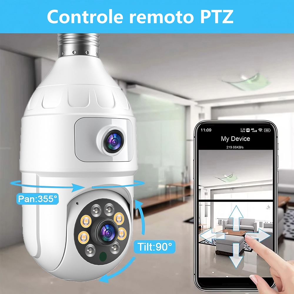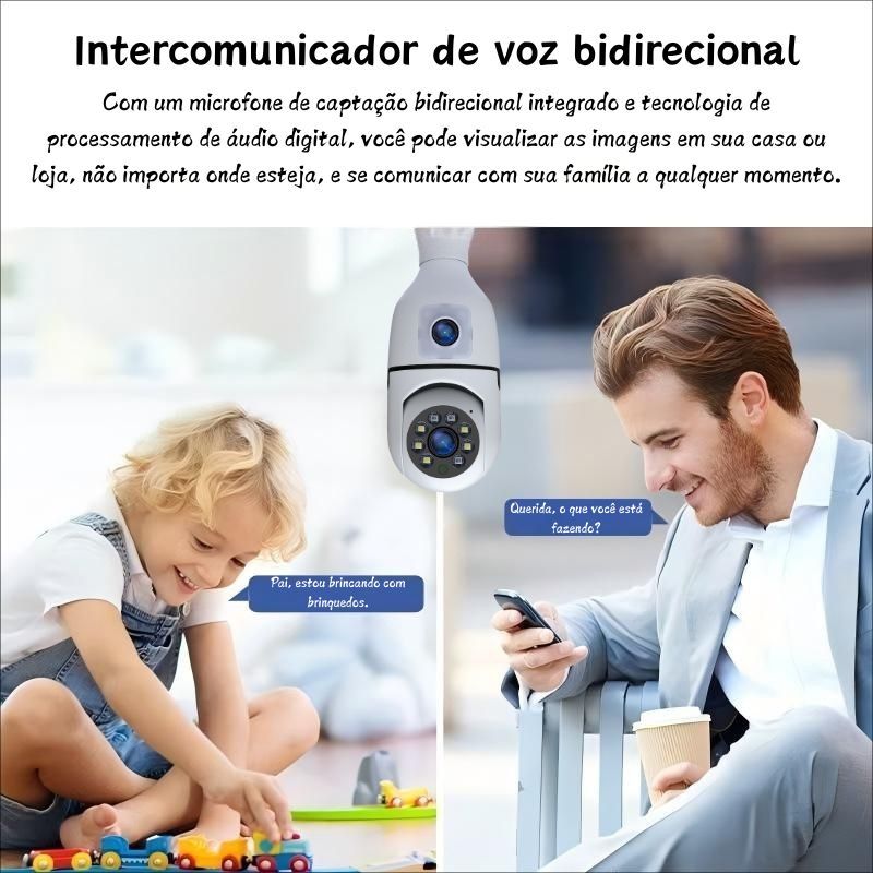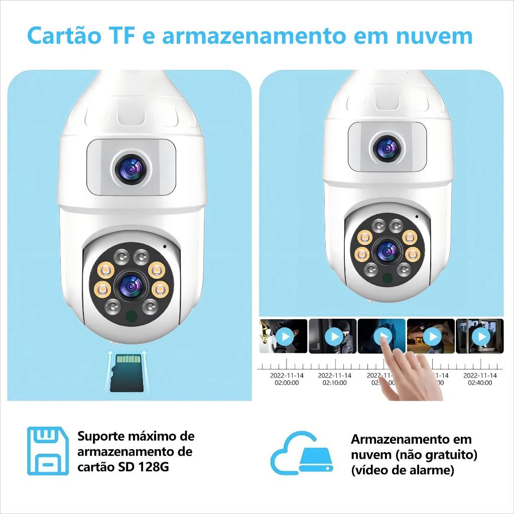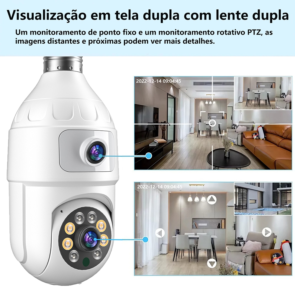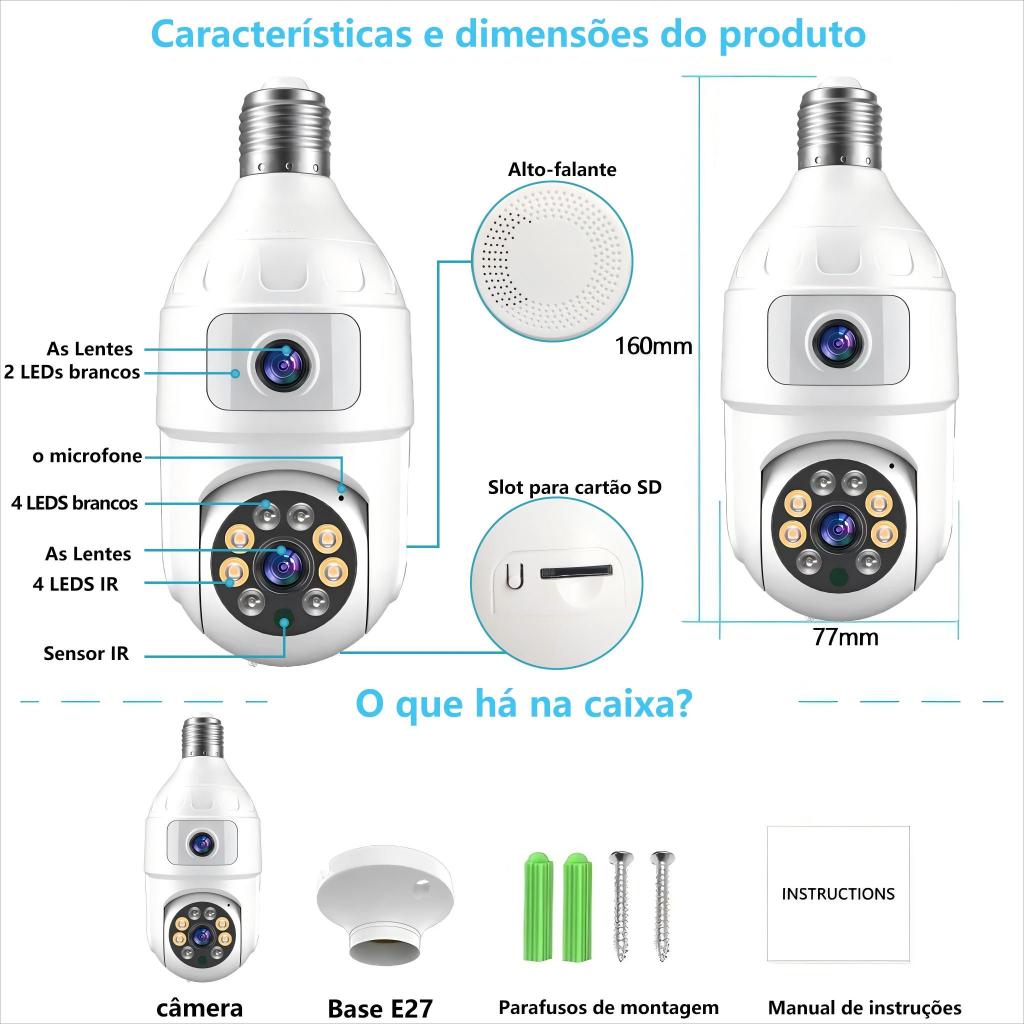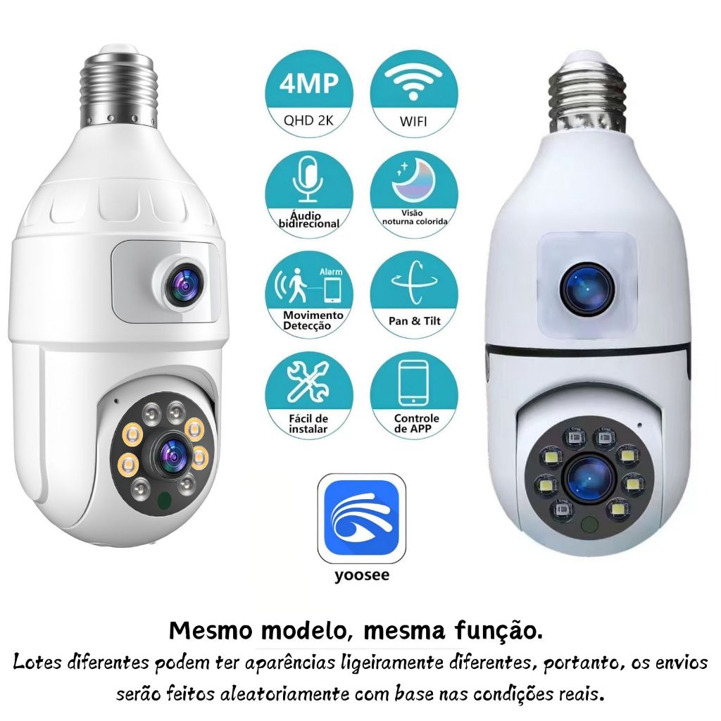 CÂMERA DUPLA LENTE 4MP YOOSEE PRO • Visão 360° WiFi • Alarme Sonoro • Instalação em Lâmpada + CARTÃO 64GB GRÁTIS!