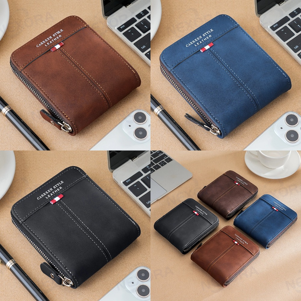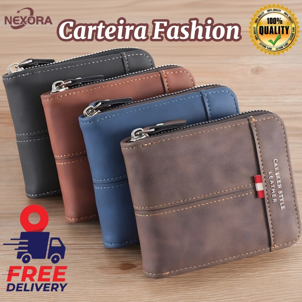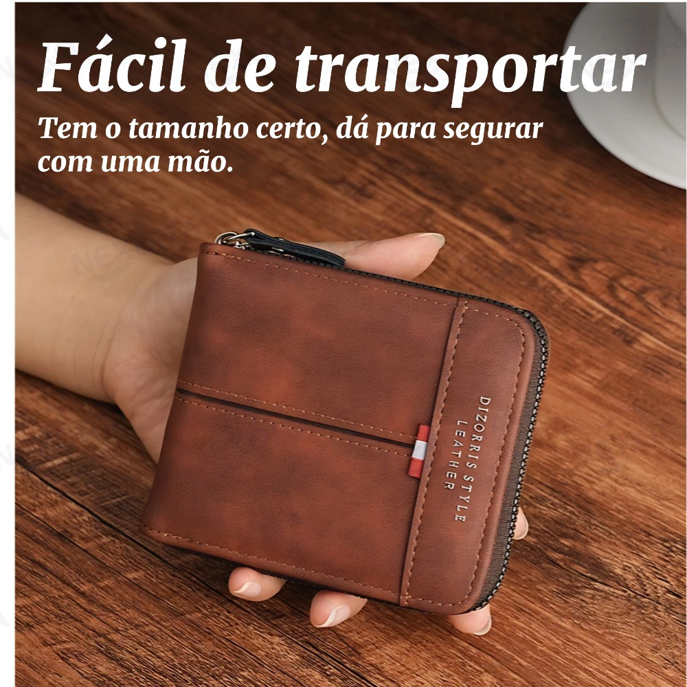 Novo Estilo Carteira de Couro Multifuncional com Zíper e Porta-Cartões de Identidade