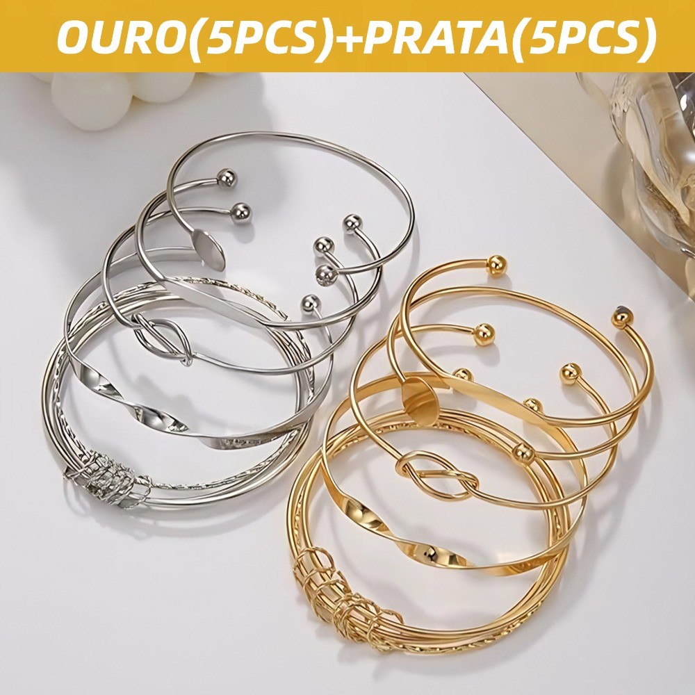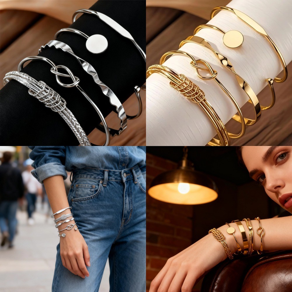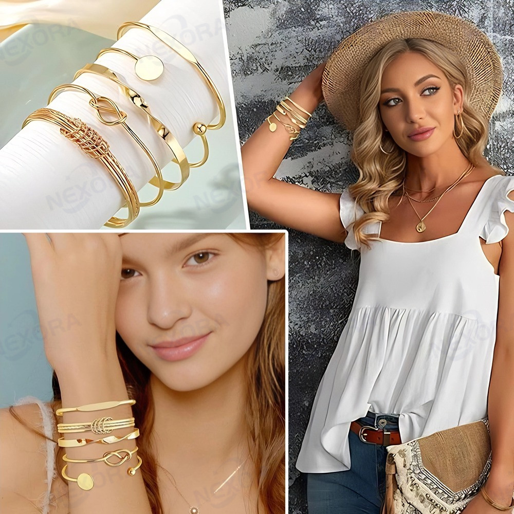 Conjunto De Pulseira De Torção Geométrica 5 Peças Para Mulheres Minimalista Empilhável Presente De Joias Da Sorte