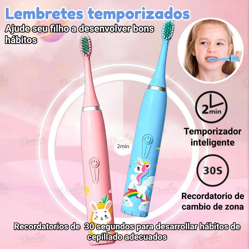 Escova Dental Elétrica Ultra-Sônica Para Crianças Acústica Onda Cabelos Suaves Dupla Face Limpa Cuidados Desenho animado