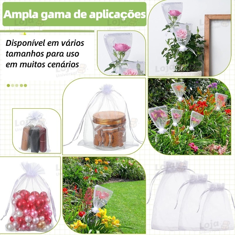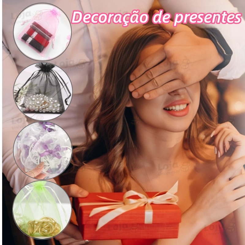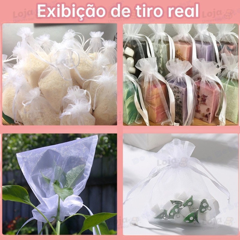 Saquinho Organza 7*9/9*12/10*15 Saco de Presente Tule Saquinho Branco Festa Casamento Saco bolsa de batom-LU