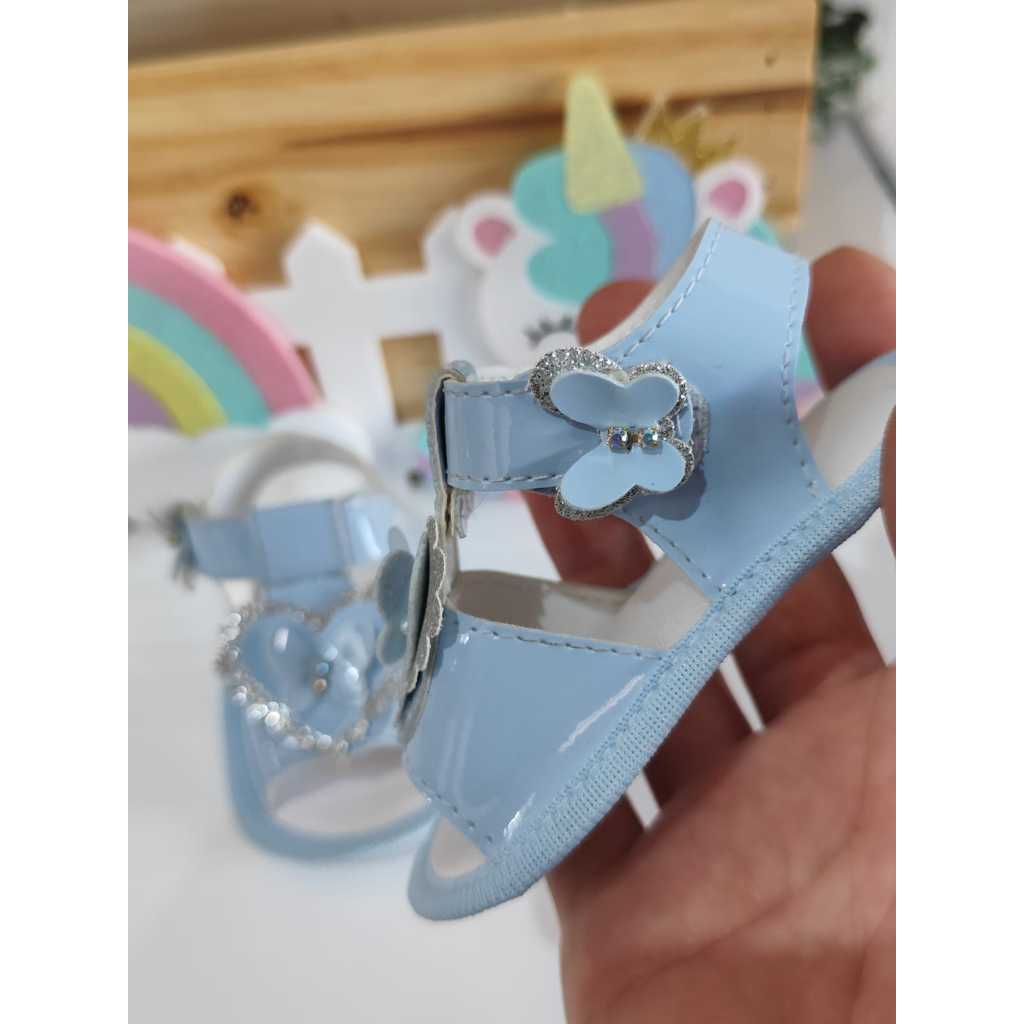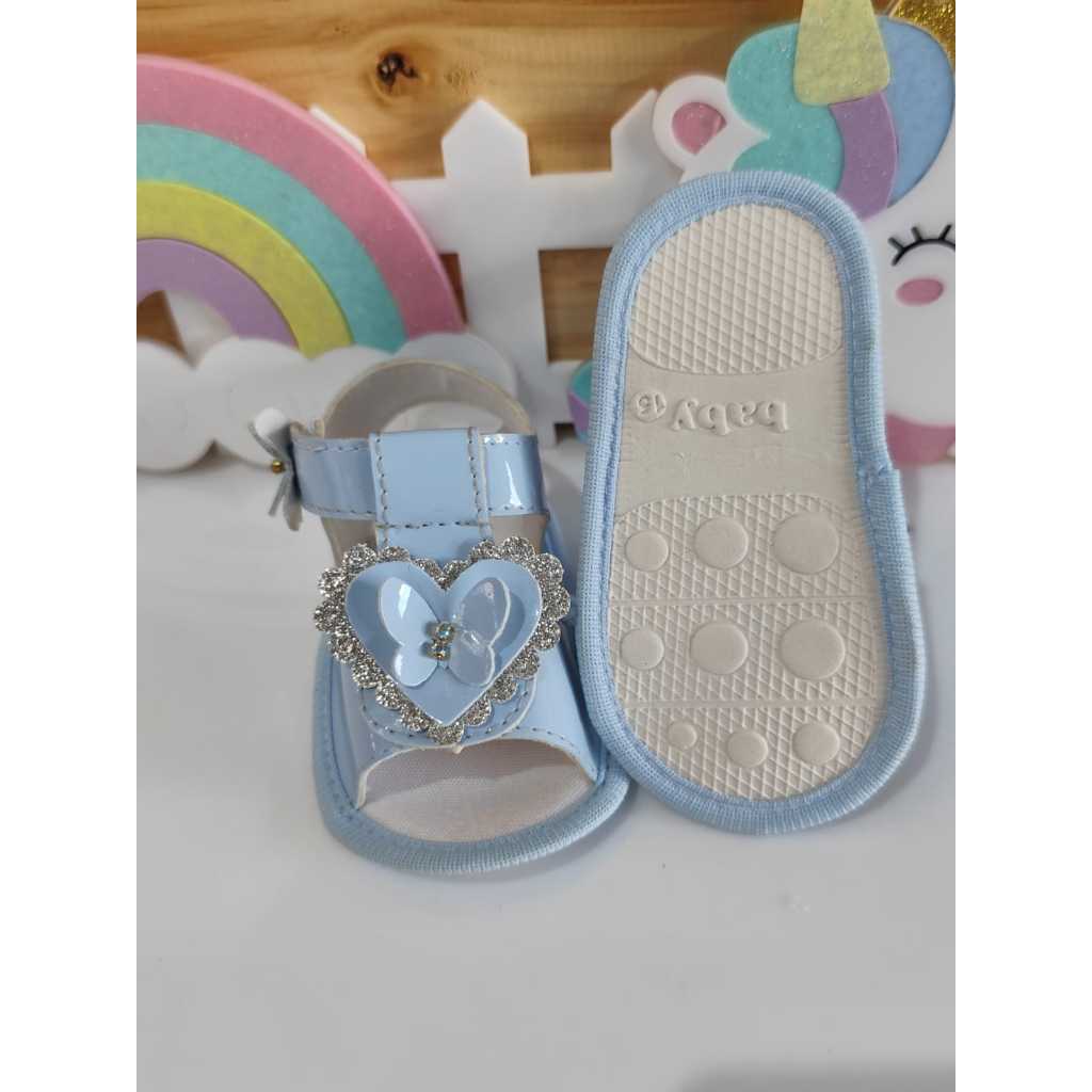 Sandália Para Menina Luxo 0 a 12 Meses Azul Bebê Coraçaõ